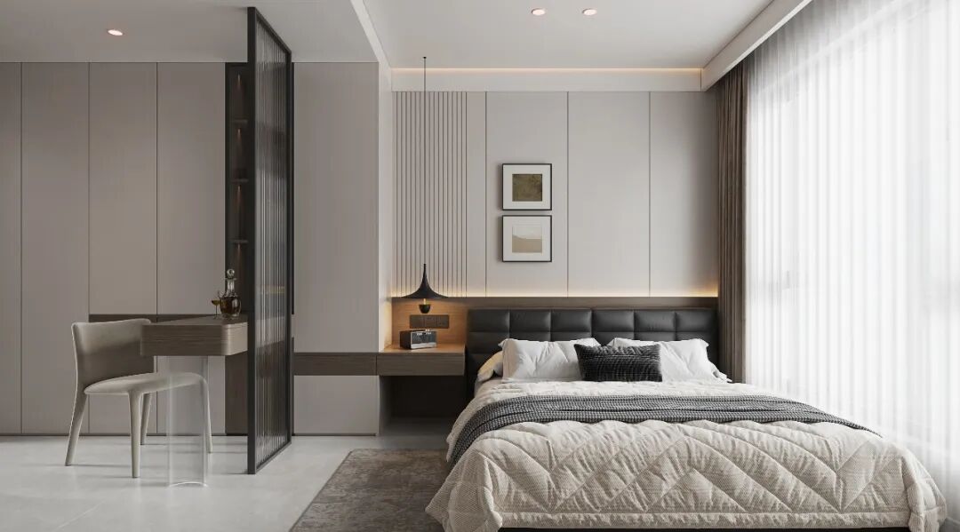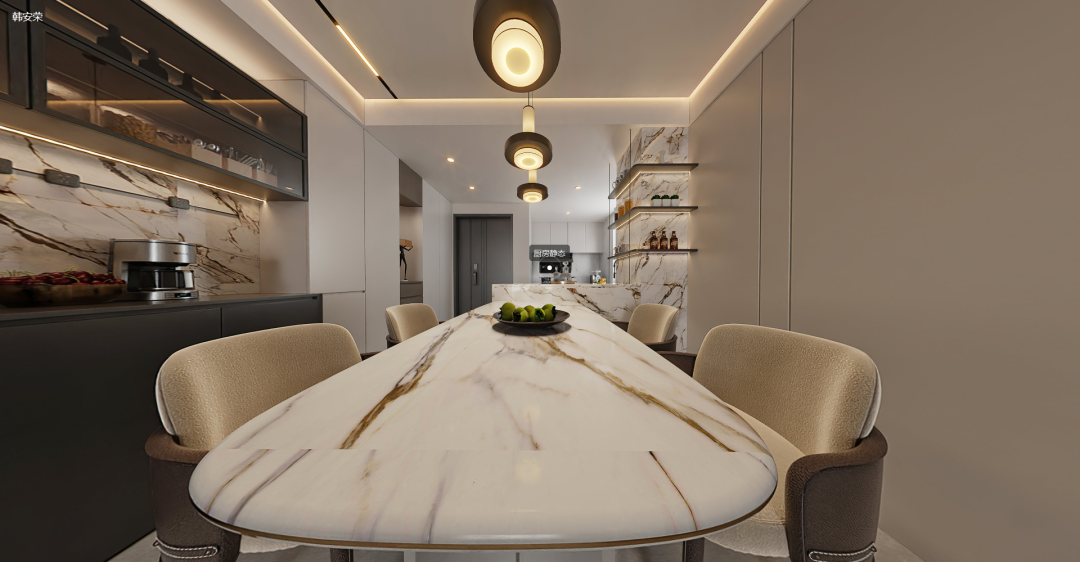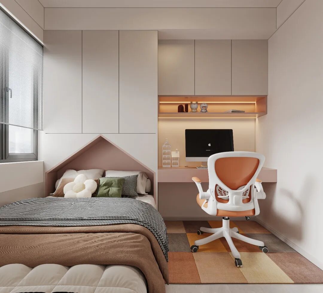 做这个案子时,我不想让“轻奢”变成“冷冰冰的高级”——比如客厅的暖光灯带,就是想让冷调空间裹着温柔;最满意的是儿童房的“小房子”床头,既戳中孩子的童心,又能用到长大。希望业主每次推门回家,都能被这处“有温度的高级”接住,把日子过成既精致又舒服的样子。