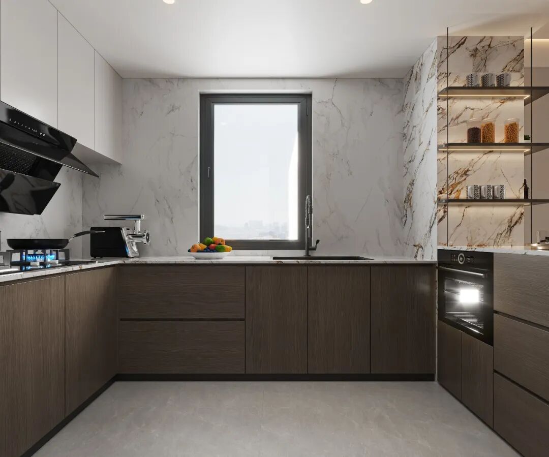 设计要点/ 1、轻奢风选“冷调+暖光”:黑、棕等冷色调压质感,暖光柔化氛围,高级感不压人;2、小空间用“开放+封闭”柜:封闭区藏杂物,开放区加灯带,既整洁又显精致。
