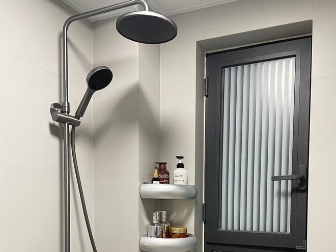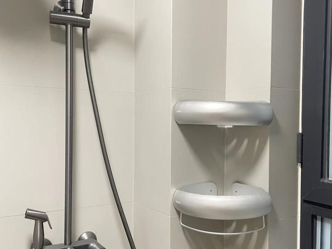 做法建议:淋浴间墙角架,建议选择加强粘贴型或者是打孔安装的,承重会更可靠。此外,要定期检查一下牢固程度,避免脱落。
