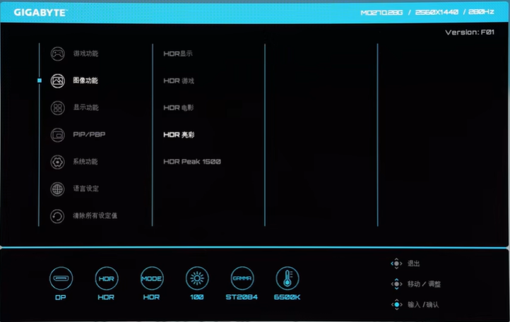亮度大小:SDR 335cd/m2 (Typ);HDR 1500cd/m2(Typ,APL 1.5%)