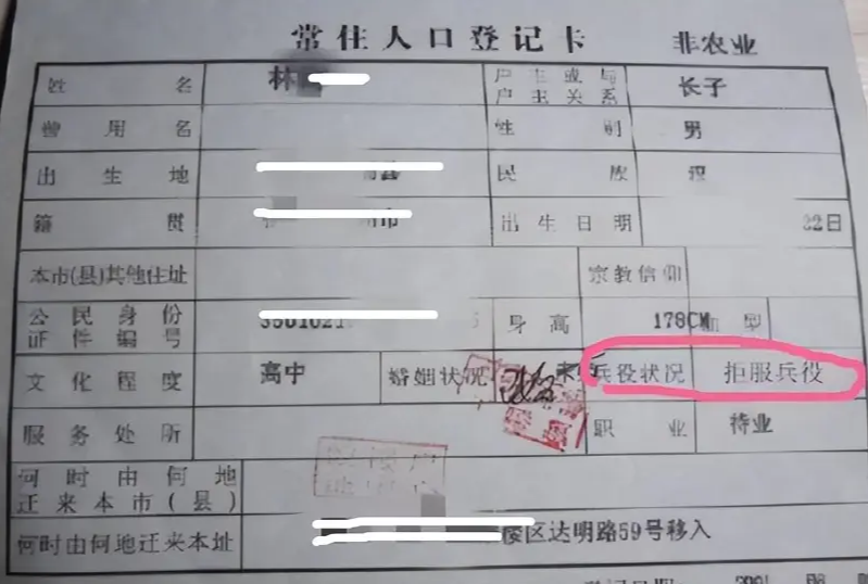 每个热血青年或许都曾有过身穿戎装、保家卫国的梦想。但如果你翻开自家户口本,在个人页上看到“拒服兵役”这四个字,那么很遗憾,你的军旅之路尚未开始就已终结。