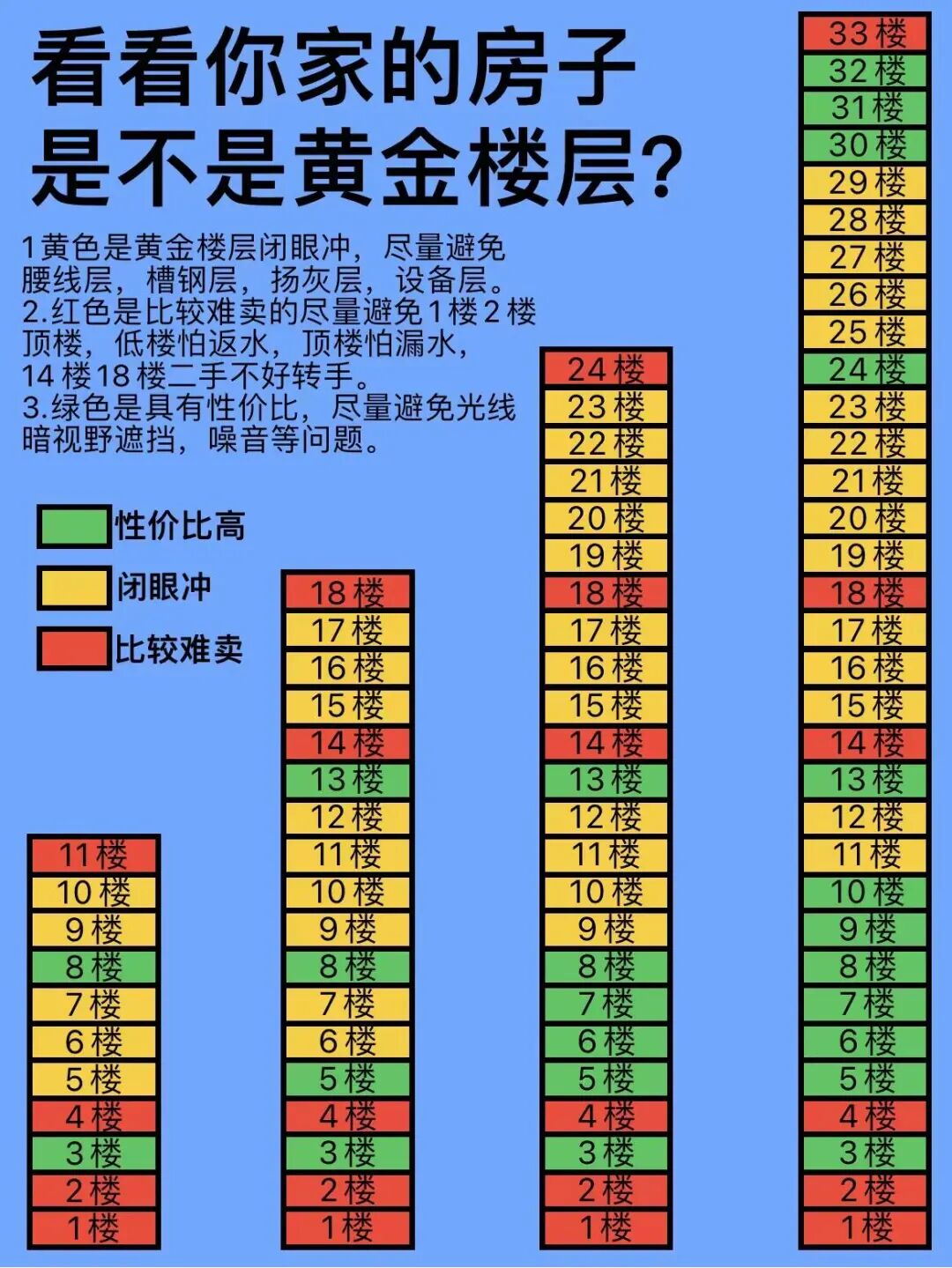 听一句是一句:别扭的楼层不买,精装房不买,低洼地段不买,握手楼不买,超高层不买。