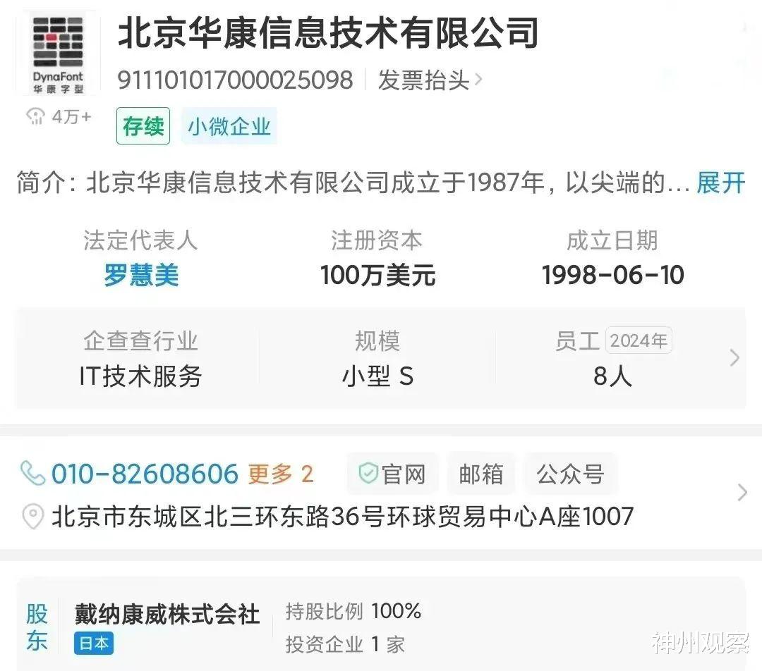 企查查显示,原告北京华康信息技术有限公司,是日本“戴纳康威株式会社”的全资控股公司,持股比例100%——