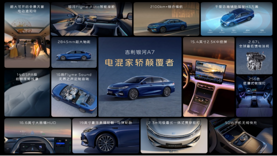 作为“电混家轿颠覆者”的吉利银河A7基于GEA全球智能新能源架构打造,首发搭载雷神AI电混2.0、千里浩瀚辅助驾驶H3方案、全新银河Flyme Auto智能座舱等领先技术成果,拥有2L级馈电油耗,2100+km超长综合续航,2845mm超长轴距等越级体验,是同级产品力第一、质价比第一的家轿。吉利银河A7在节能、空间、性能、安全、智能方面带来五大颠覆价值,成为电混家轿颠覆者。