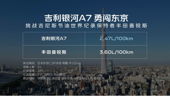 7月2日,吉利银河A7在日本东京的油耗测试中,凭借百公里2.47L的实测油耗,一举打败了吉尼斯节油世界纪录保持者丰田普锐斯,成为全球最节能家轿,给用户带来“怎么开都省,在哪开都省,谁来开都省”的节能体验。