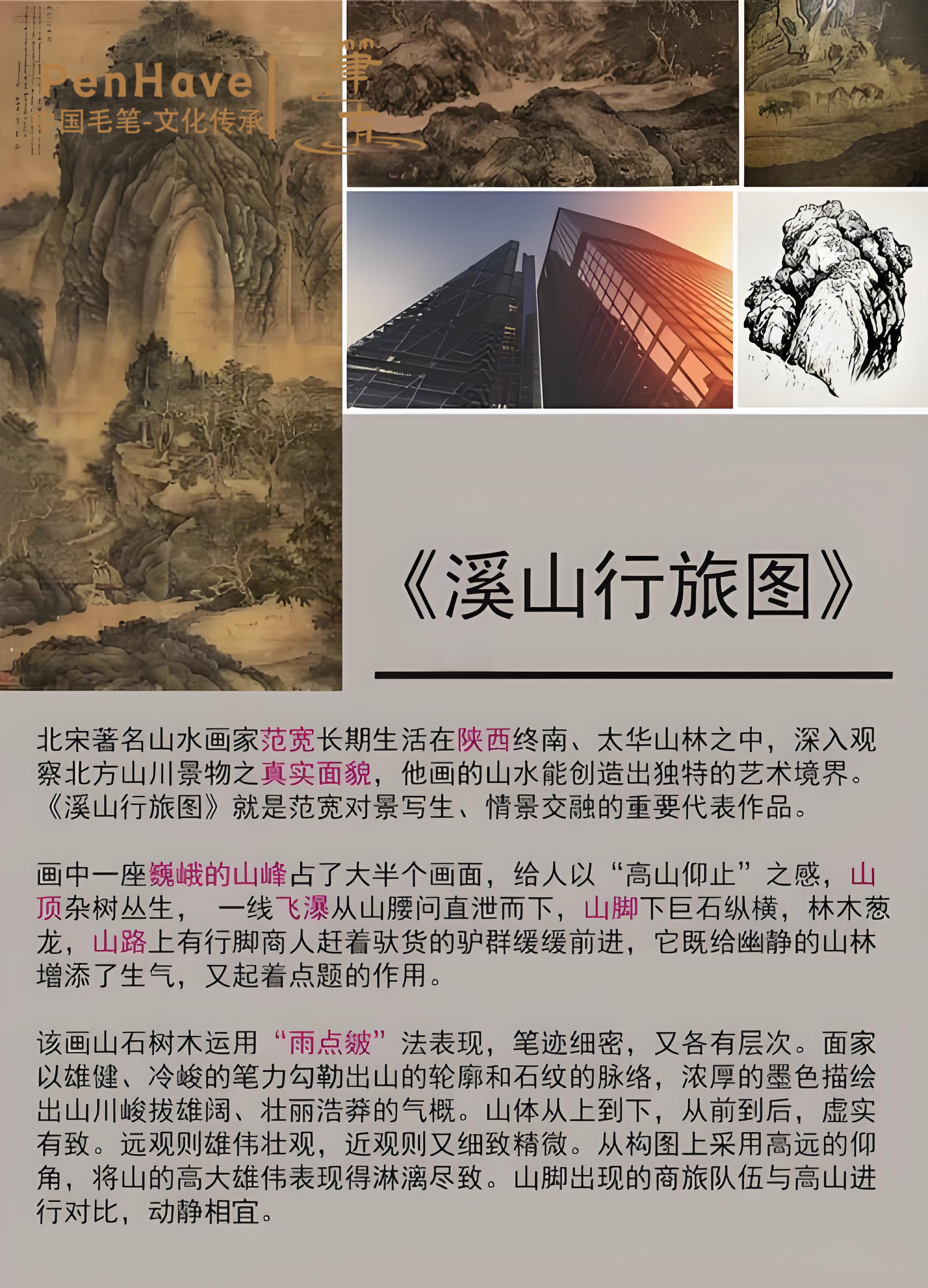 书画艺术的生命线: 从王羲之《兰亭序》的飘逸神韵,到张旭、怀素狂草的雷霆万钧;从范宽《溪山行旅图》的雄浑气势,到八大山人笔下的孤傲冷逸,毛笔独有的提按顿挫、轻重疾徐、干湿浓淡的表现力,是中国书画艺术意境生成的根本媒介。无毛笔,即无独特的中国书画。