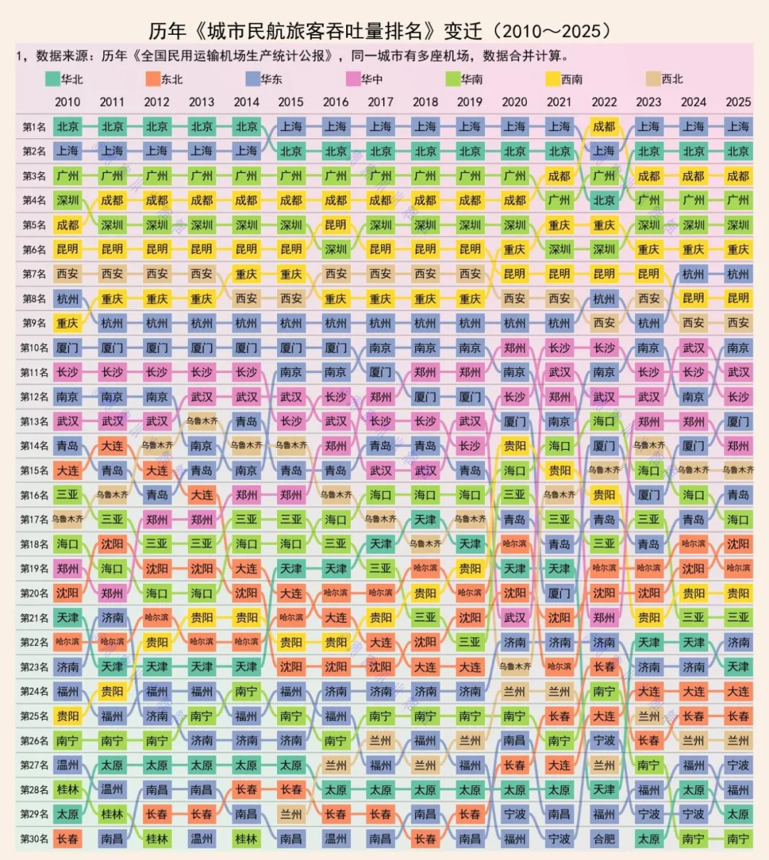从 2010 到 2025,这 16 年间,中国民航市场的格局变迁,藏着一座城市的发展脉络,也映照着国家经济的腾飞。