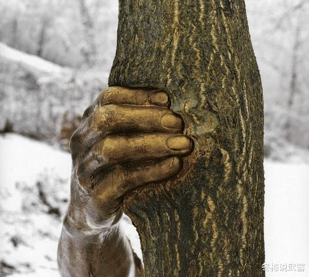 在意大利滨海阿尔卑斯的一处公园里,一棵树的树干上嵌着一只青铜铸造的人手。这只手五指紧扣树皮,青筋暴起,仿佛用尽全身力气想