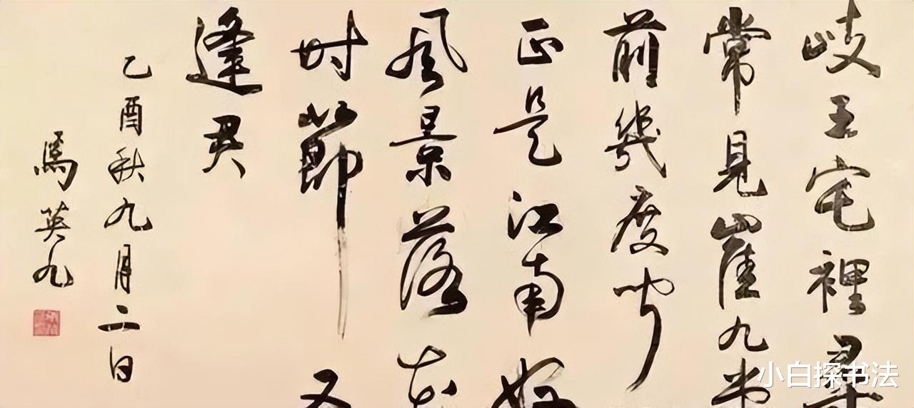 不仅如此,马英九的草书,就完全不一样,不仅有着一种做作之感,而且在字迹之间的关系上,也表现出不一样的特点,总体上,做到了字字连,这种状态,比较多,就有一种违和感,反而让人感觉到不够自然。