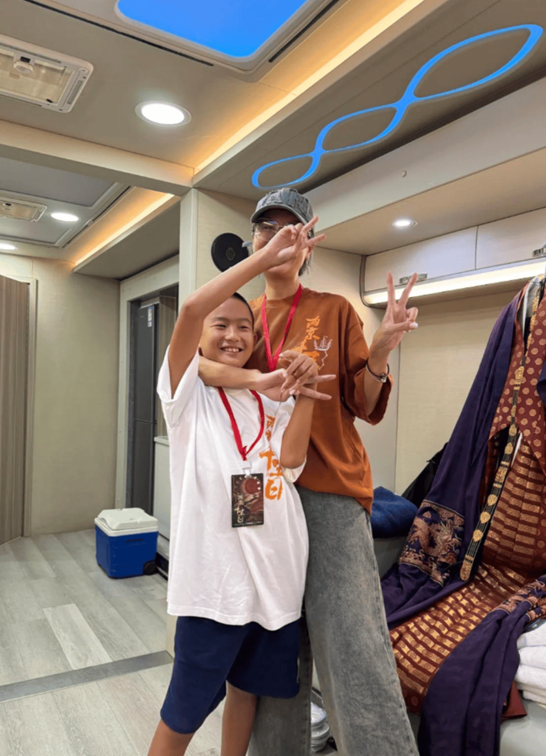 合照中,儿子站在高曙光身侧,咧嘴大笑,眼睛笑成一条缝,洋溢着发自内心的快乐。站姿自然放松,身体稍微侧向镜头,充满朝气活力,明显是在浓浓爱意中健康成长的孩子。