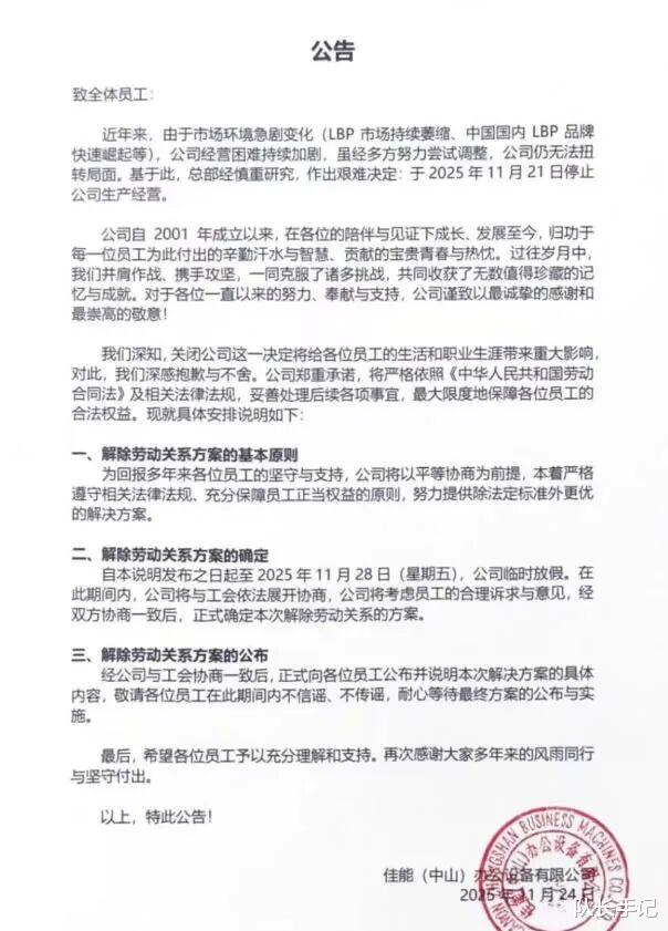 佳能中山工厂裁员补偿方案发布了,有员工一次性领到了40万补贴。为什么会这么高呢?主要就在于,佳能给出的补偿方案,远远超出了劳动法规定的范畴。佳能想用这种超额补偿的方式,快速解散员工,关厂撤离。那这个裁员补偿具体怎么操作呢?