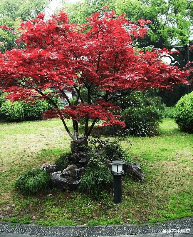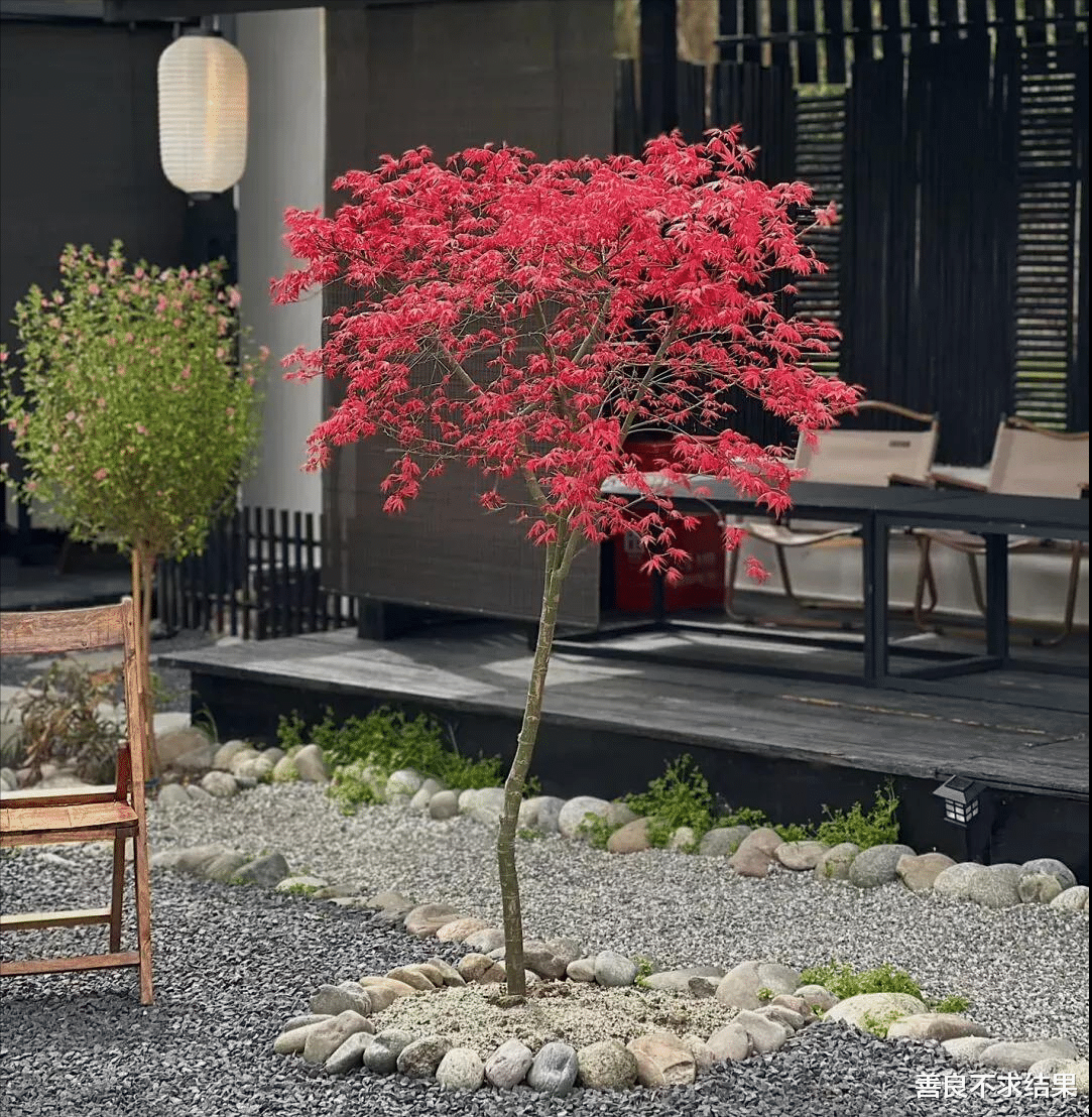 也可以在日式杂木庭院中,与其他树种一同出现。这样更能突出红枫美丽的颜色。