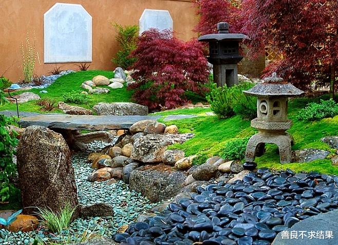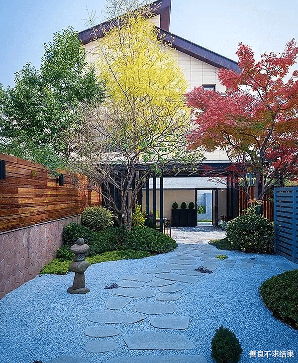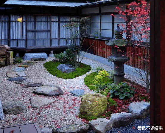 ①,在日式庭院中,多以园林庭院景观形式出现。结合日式的枯山水,苔藓,石笼灯,水系等,形成了多彩庭院。