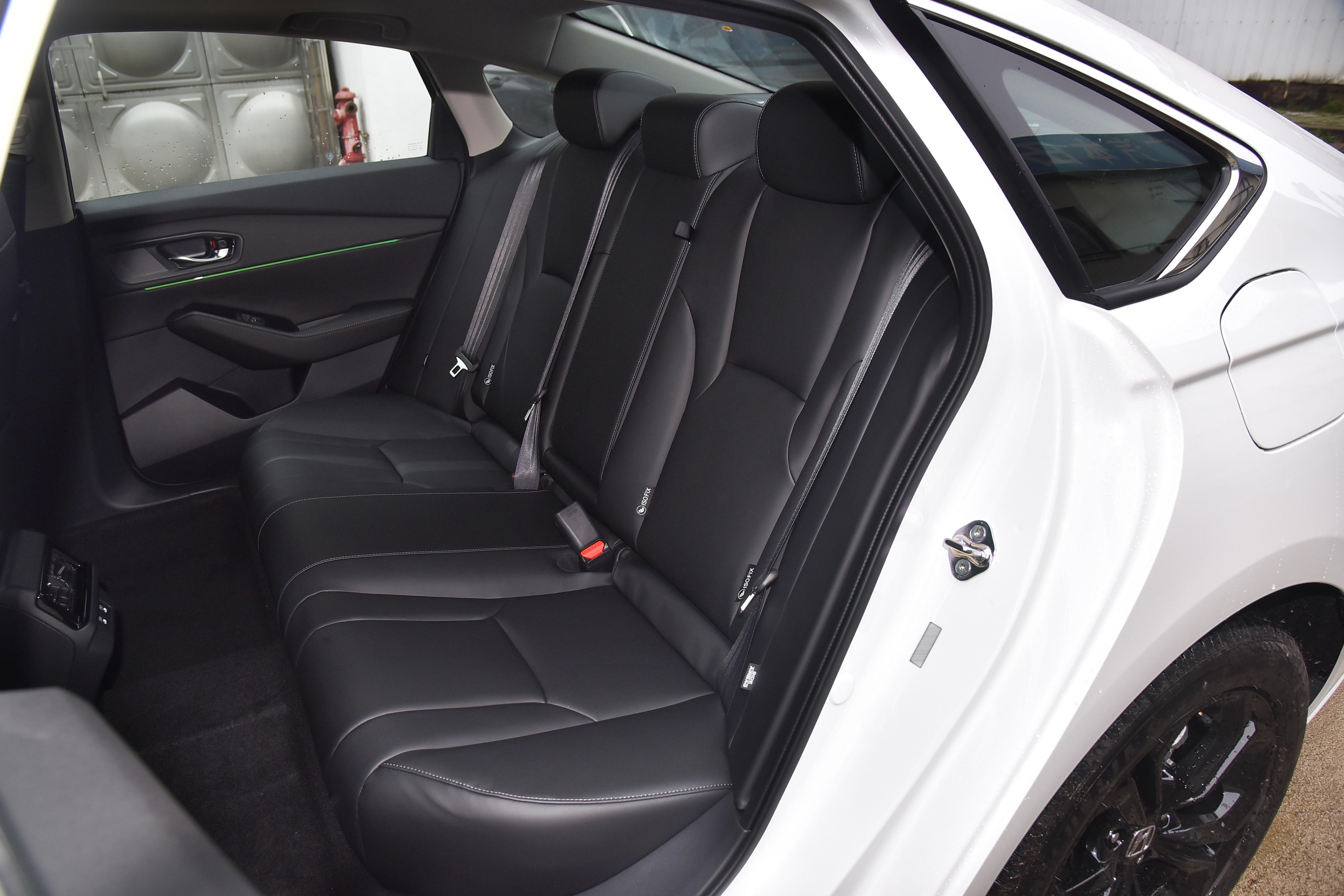 反观本田雅阁的车身尺寸长宽高为4990x1862x1449mm,轴距2830mm,车身尺寸上的数据上与福特蒙迪欧还是有着一定的差异,但得益于本田在车内空间利用率的一贯优势,同样是我坐进车内后排,腿部空间也有着较为宽敞的空间体验,该车的座椅也采用了仿皮材质,并且座椅坐垫的填充较为柔软,实际乘坐时的舒适性也不错,但该车的前排座椅仅支持了的电动调节功能,像是加热和通风功能并没有给到,这一点还是有着一定提升空间。