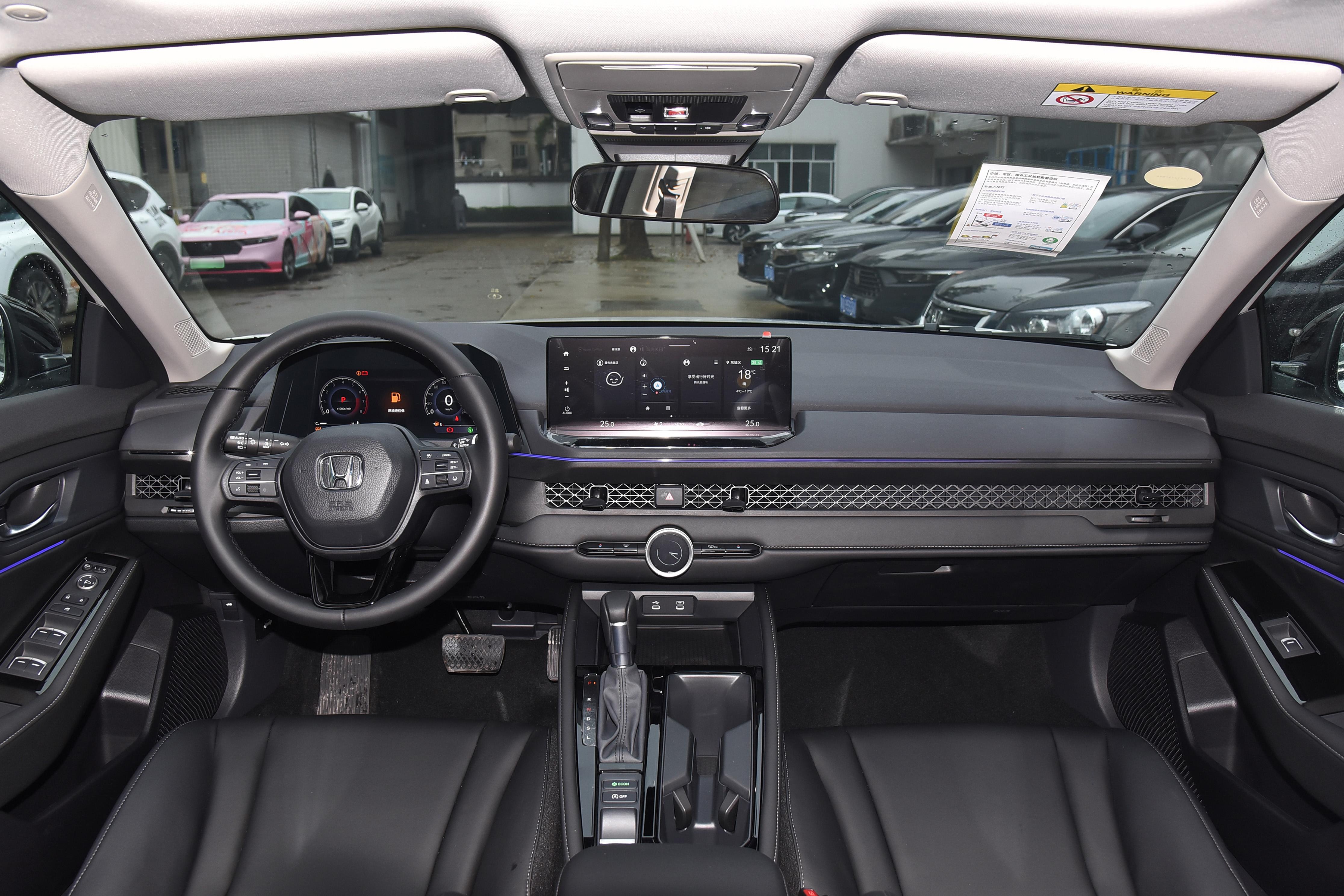 反观本田雅阁,其内饰延续了一贯的风格设计,车内的整体做工表现也还不错,但是贯穿式的蜂窝饰板虽然起到了车内拉伸宽度的效果,但也会造成塑料感较强一些的视觉感官。车内采用了10.2英寸的全液晶彩色+12.3英寸的中控屏设计,并搭载了Honda CONNECT 4.0车载智能系统,在智能互联功能上表现中规中矩,并没有给到连续性语音识别功能。
