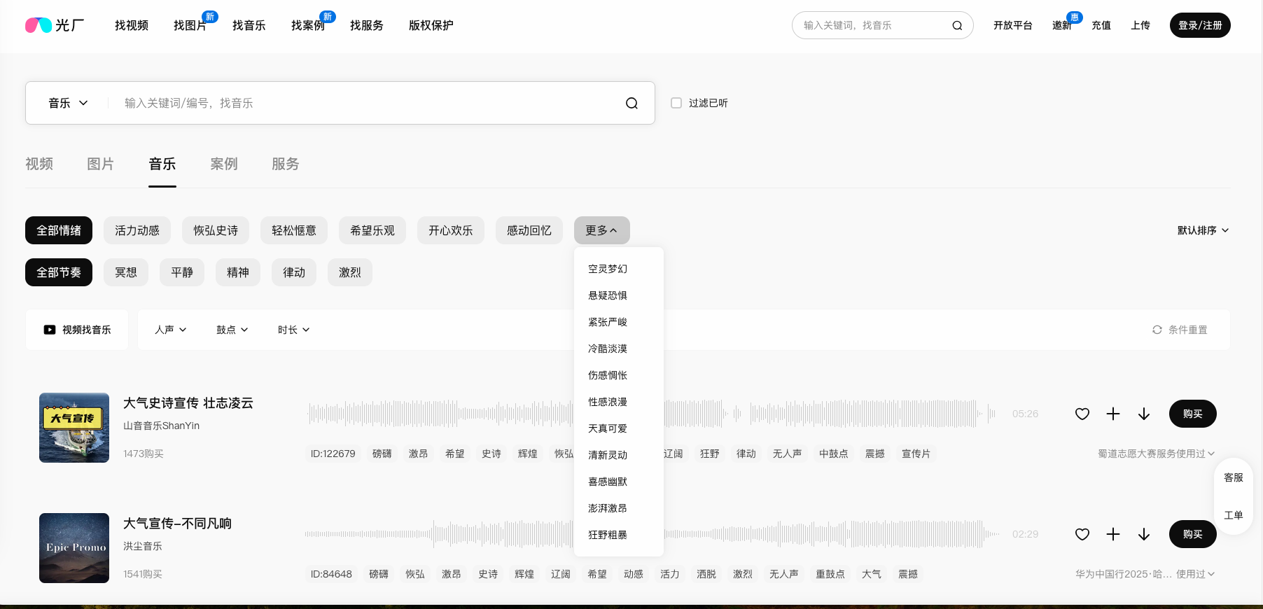 光厂(vjshi.com/music)—— 国内音乐素材下载首选平台