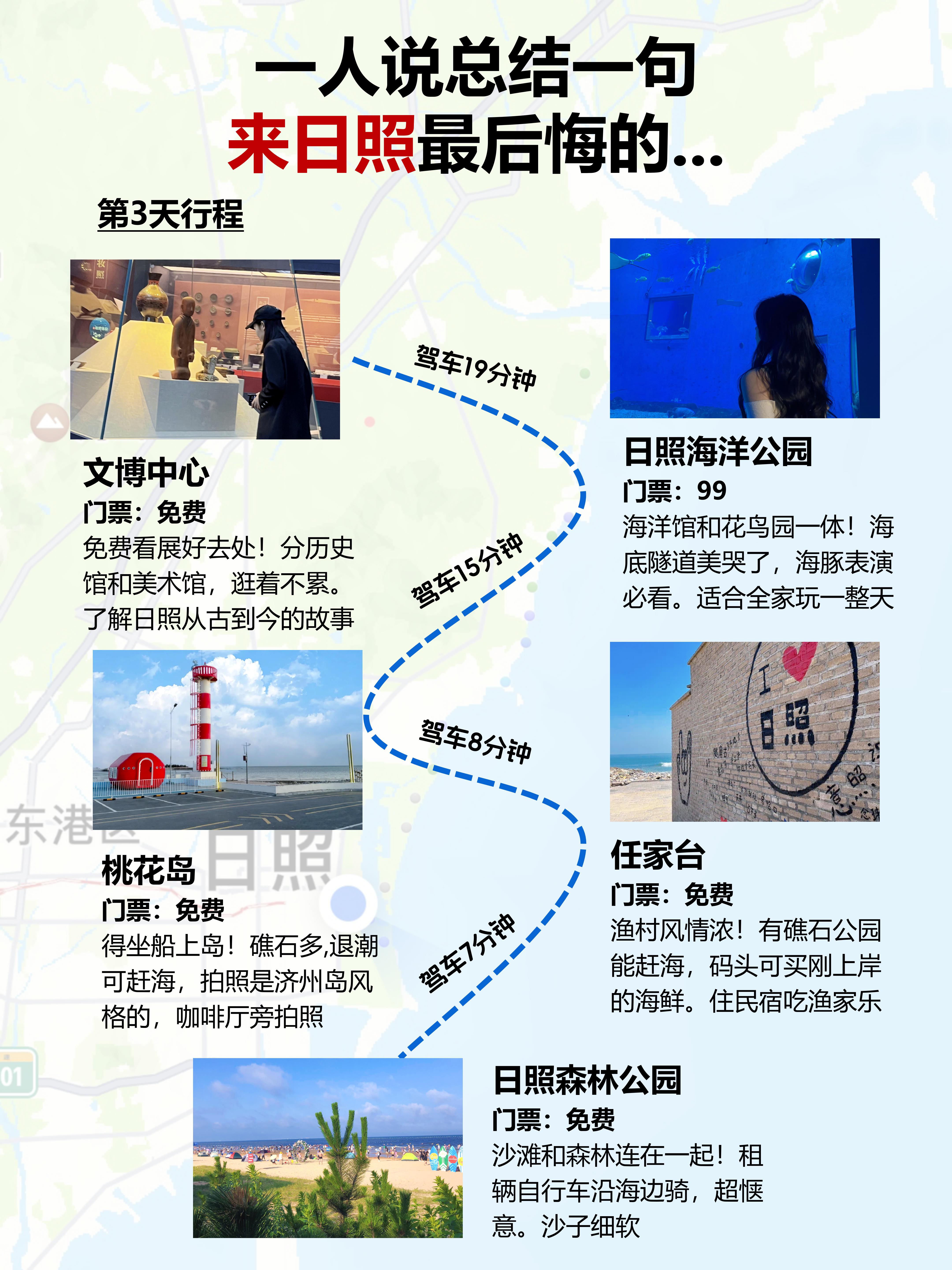 · 下午去日照市文博中心(市博物馆/美术馆),免费参观,在室内了解城市的历史与艺术,为旅程收尾
