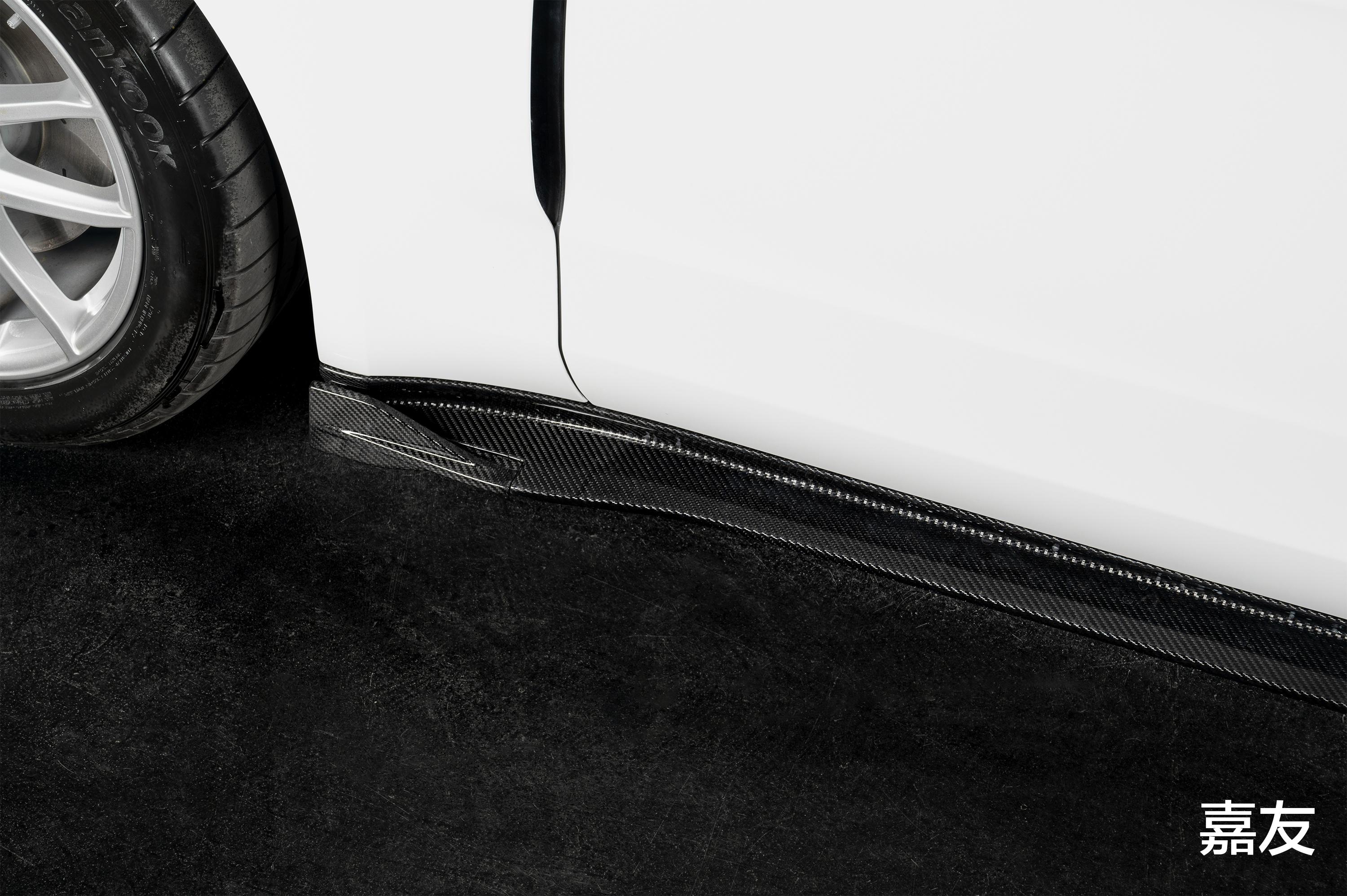 完美替换原厂侧裙,对位精准、接缝平滑。真正的碳纤维材质营造出更低趴的视觉重心,优化车身线条;更能在疾驰中有效引导气流,显著提升行驶稳定性。