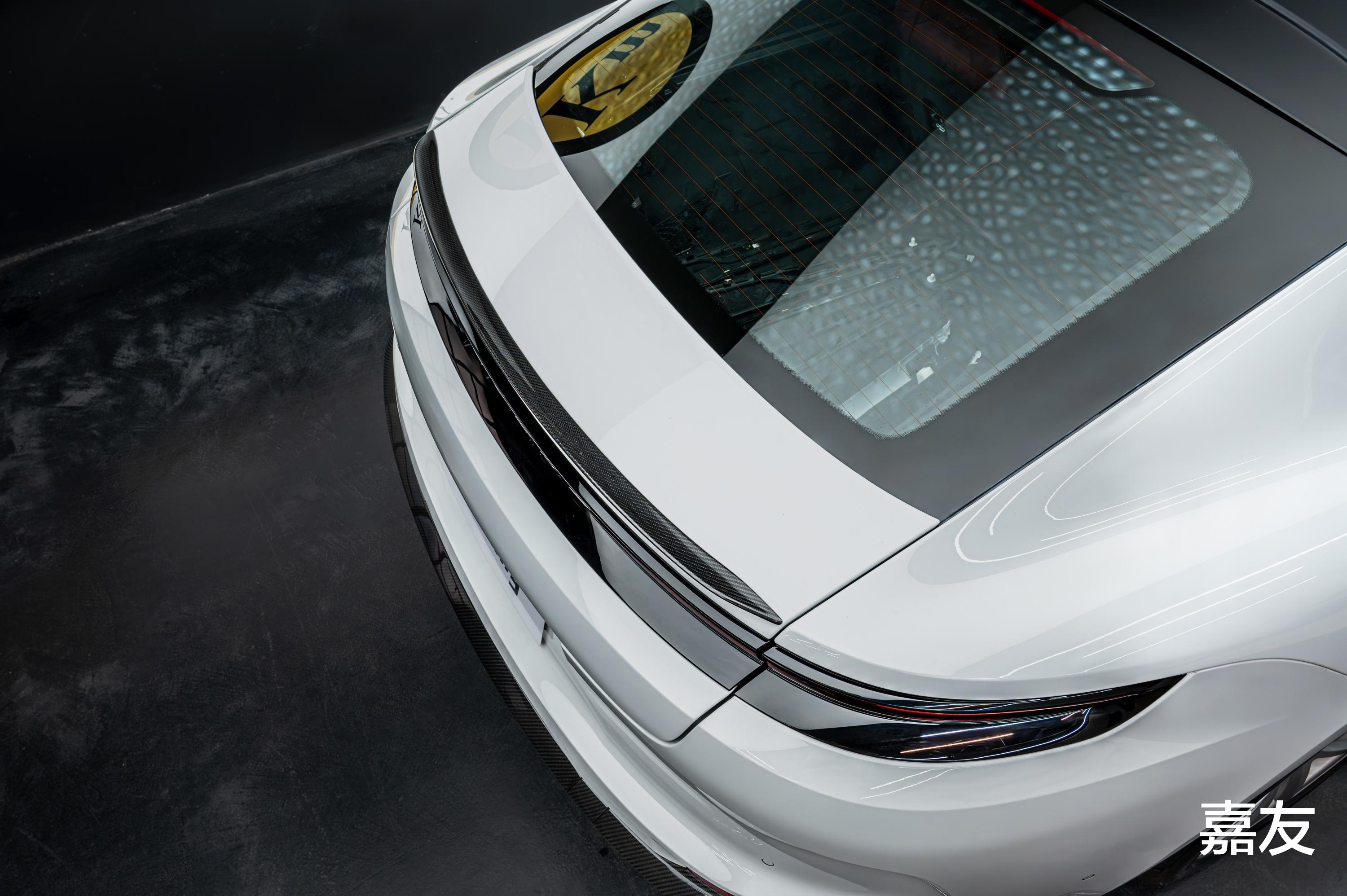 这并非单纯的装饰,而是性能与美学的结合体。尾翼能有效梳理尾部气流,增加后轴下压力,从而提升操控精准度与抓地力,让动力输出更高效。视觉上,独特的碳纤维斜纹亮光编织纹理配合流线型设计,为稳重的帕拉梅拉注入了强烈的运动基因。