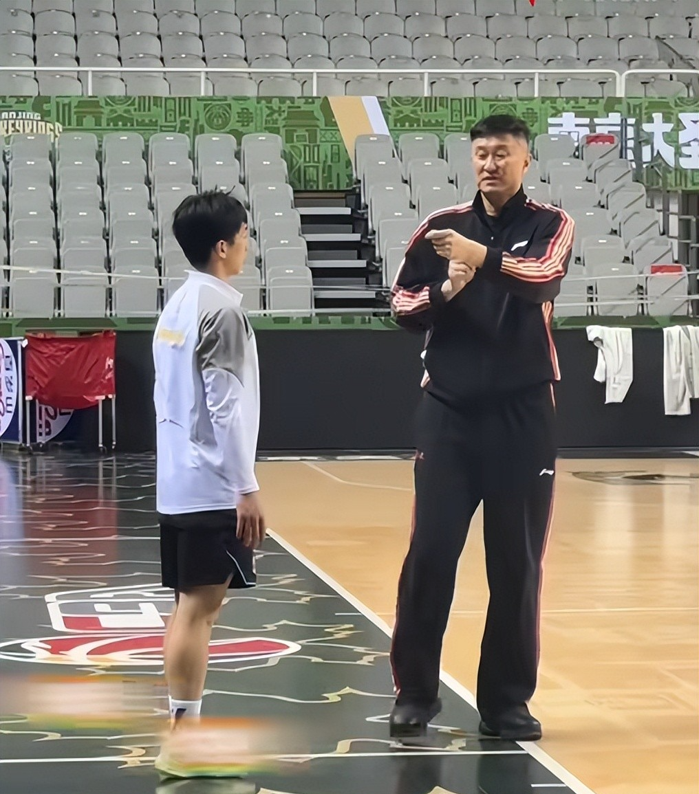 杜锋指导心情大好,转了一圈之后就找旁边的小将杨溢训练,杨溢点头哈腰,认真聆听杜锋的教导。