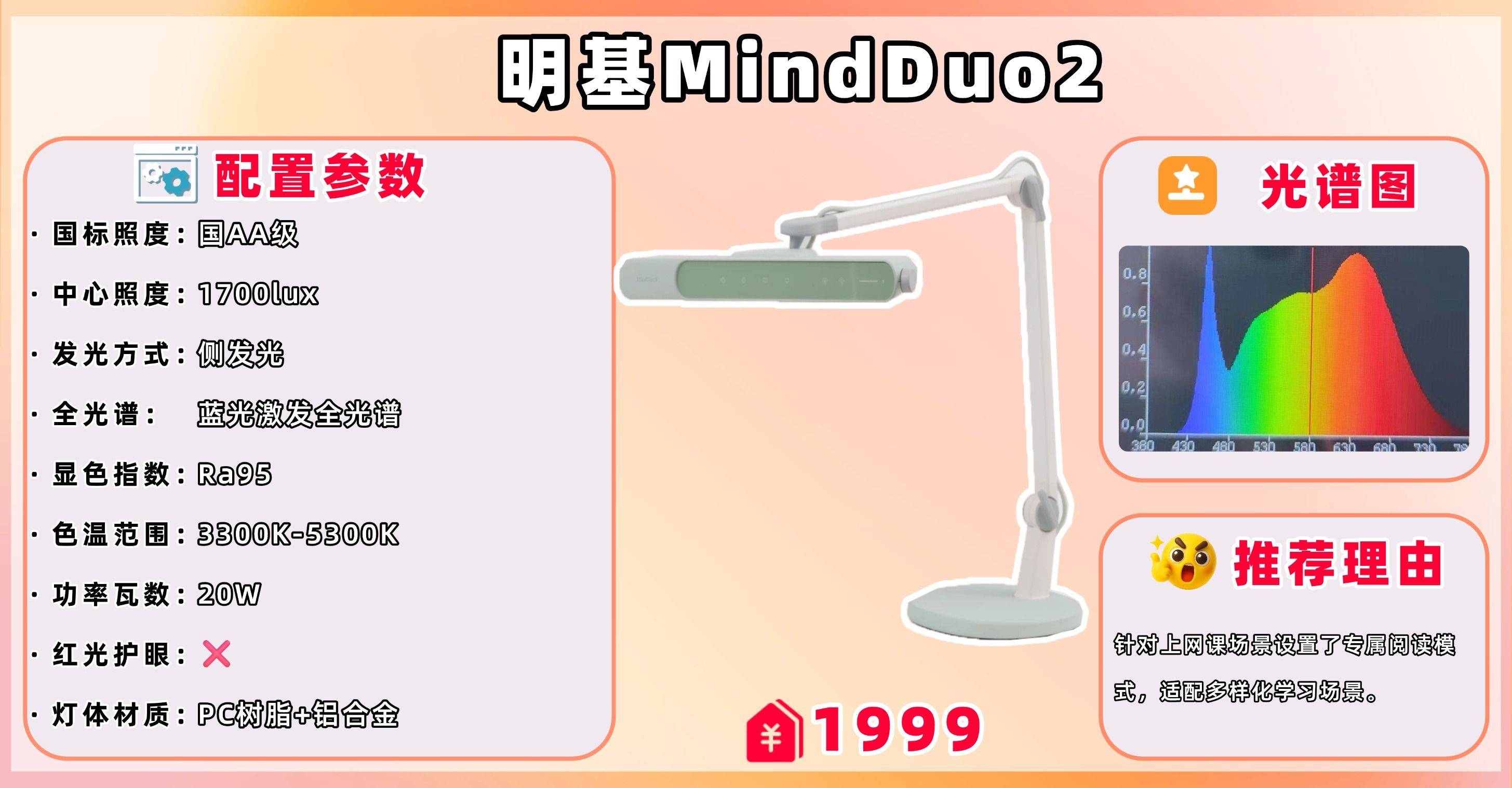 学生用的护眼台灯什么样的最好?明基MindDuo2护眼台灯采用隐藏式光源设计,将光源巧妙地隐藏起来,起到减少眩光的效果,此外功能区域都成现在了灯头的前方,并且还有着可调节亮度的旋转钮以及具体亮度的显示条,其中还有这自动感知装置,在开启智能亮度调节后,能够根据周边光线进行调节。