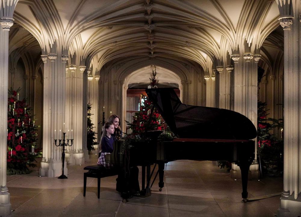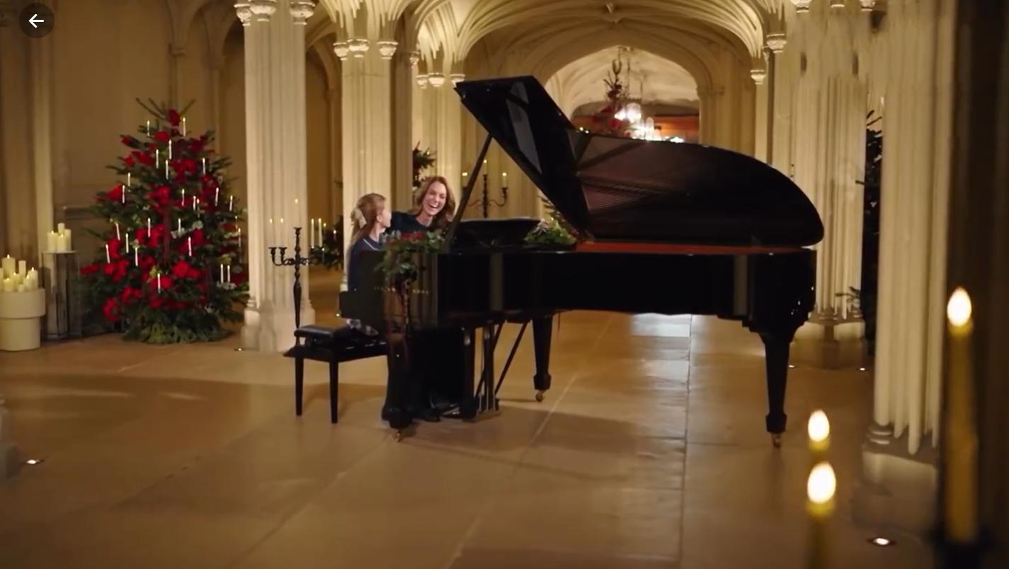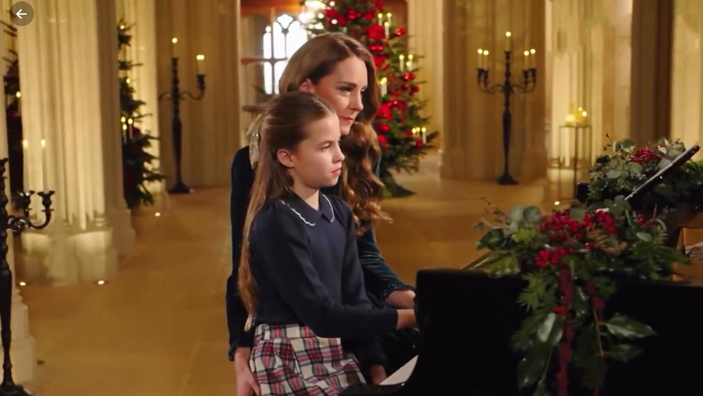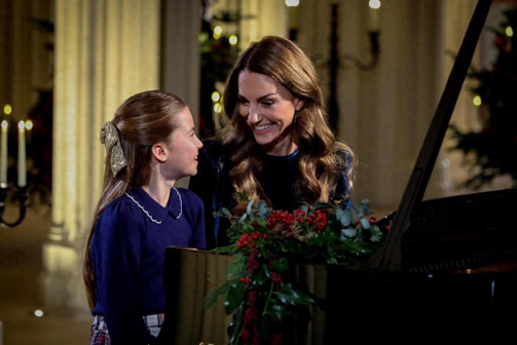 12月24日英国电视台在圣诞平安夜播放了凯特王妃带着女儿夏洛特弹钢琴的画面;让人没想到的是凯特王妃依然美得光彩照人,只不过夏洛特公主挡住了妈妈身体。