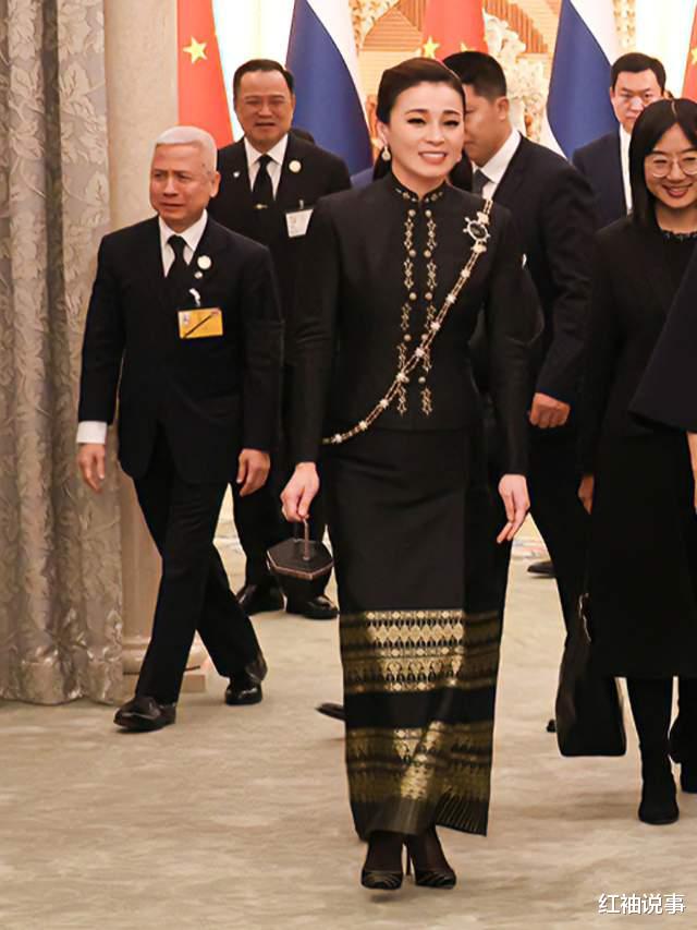 就说这次访华吧,苏提达那表现相当出彩,她一连换了好几套低调又有韵味的泰式礼服。这些礼服不仅把泰国传统丝绸的魅力展现得淋漓尽致,起到宣传作用,还通过暗色系表达了对太后国丧的哀悼,真不愧是泰王身边的得力人儿!