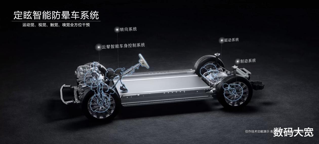 腾势N9搭载定眩智能防晕车系统,并已通过“中汽中心”、“中国人民解放军空军特色医学中心”的严苛认证,该系统以云辇智能车身控制系统为核心,通过联动底盘、动力、座舱三大系统,实现对运动觉、视觉、嗅觉、触觉等全方位干预,让用户告别晕车!