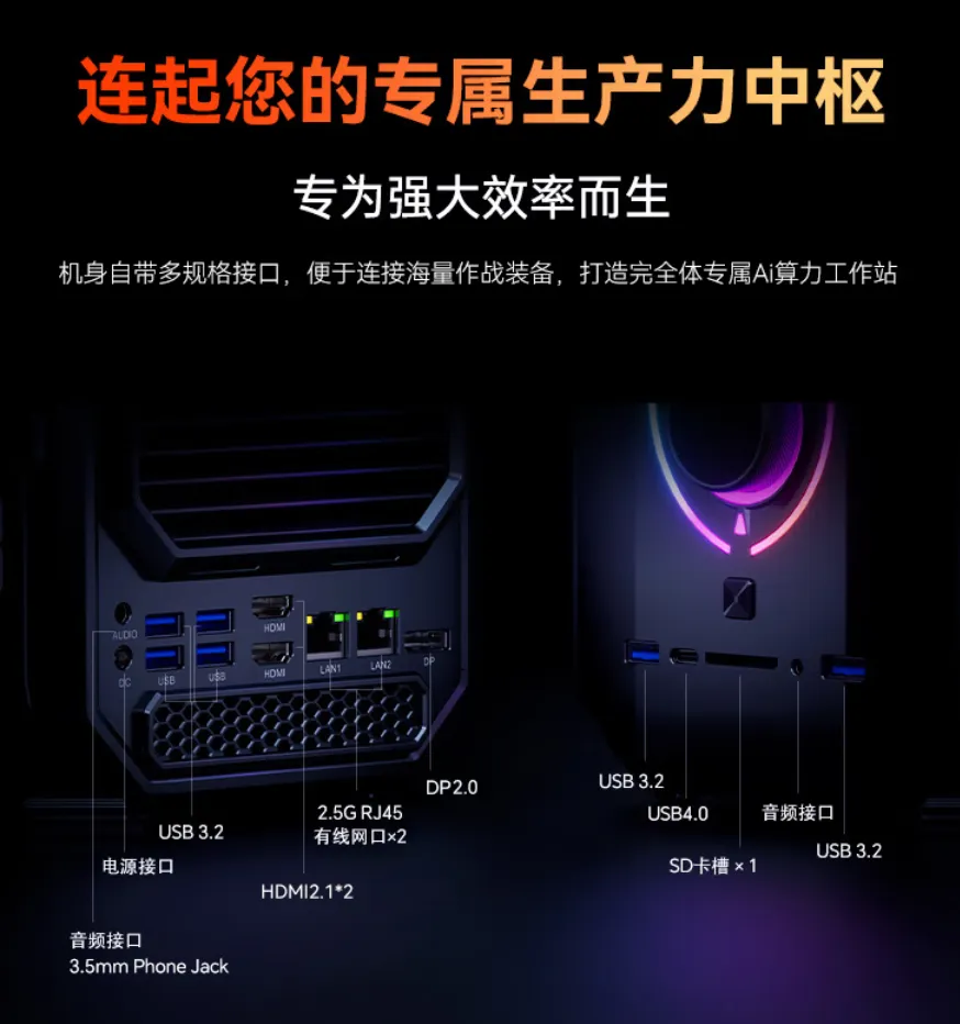 市面上绝大多数同配AI迷你工作站都采用了六联方案,外观设计撞车的不少,很容易出现审美疲劳之感。