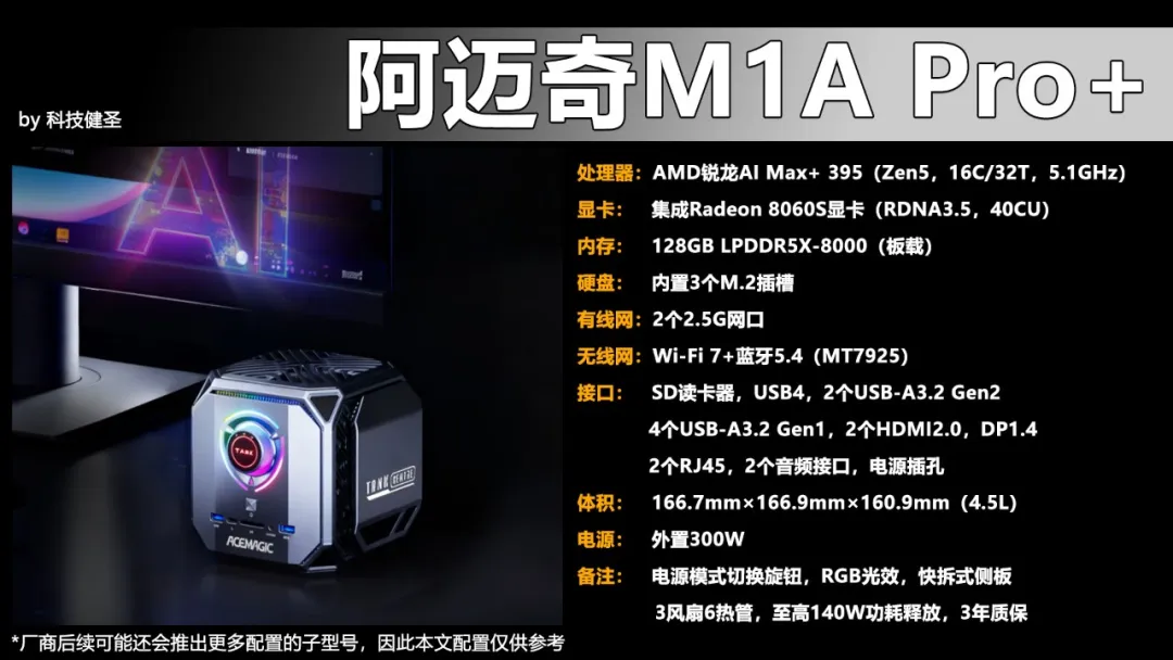 就拿阿迈奇最新推出的M1A Pro+为例,该产品搭载锐龙AI Max+ 395芯片,直接就板载了价值过万的128GB超高频内存颗粒,并提供媲美锐龙9 9955HX+RTX4060移动显卡的性能输出于一身。