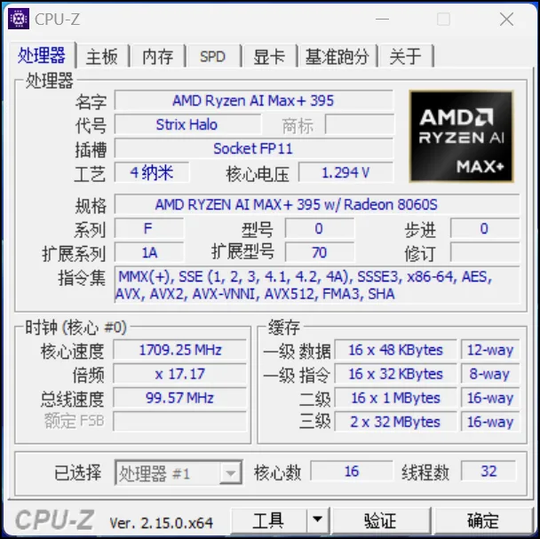 阿迈奇M1A Pro+的核心竞争力,就是搭载的这颗锐龙AI Max+ 395处理器了,采用Zen 5 CPU、RDNA 3.5 GPU和拥有50 TOPS算力的NPU单元组成,拥有16核心32线程,最高加速频率5.1GHz,内置80MB高速缓存(L2+L3),集成40CU的Radeon 8060S显卡,整体AI算力高达126 TOPS。