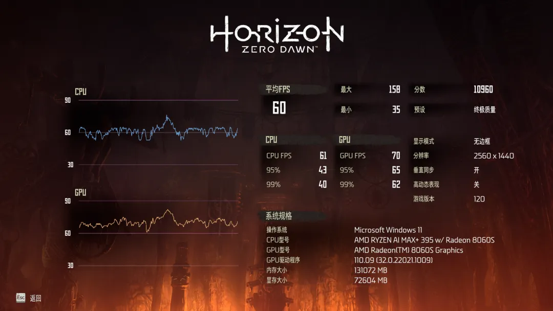 《地平线 零之曙光》终极质量画质下的平均帧数60FPS