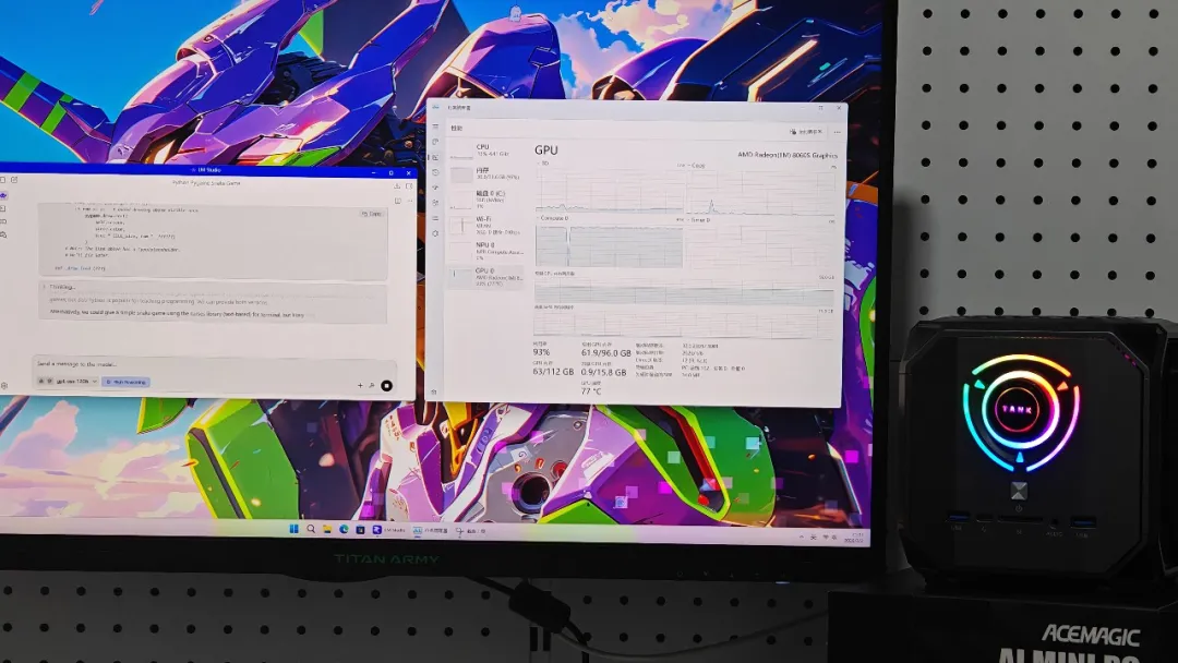 实际上,对于可分配96GB动态显存的锐龙AI Max+ 395来说,超强的CPU和GPU也只能算是副业,阿迈奇M1A Pro+的潜在消费群体,还是注重隐私安全,需要在本地部署运行超大规模AI大模型的专业用户,而这款产品的实际表现在同价位传统PC 身上也是不可想象的。