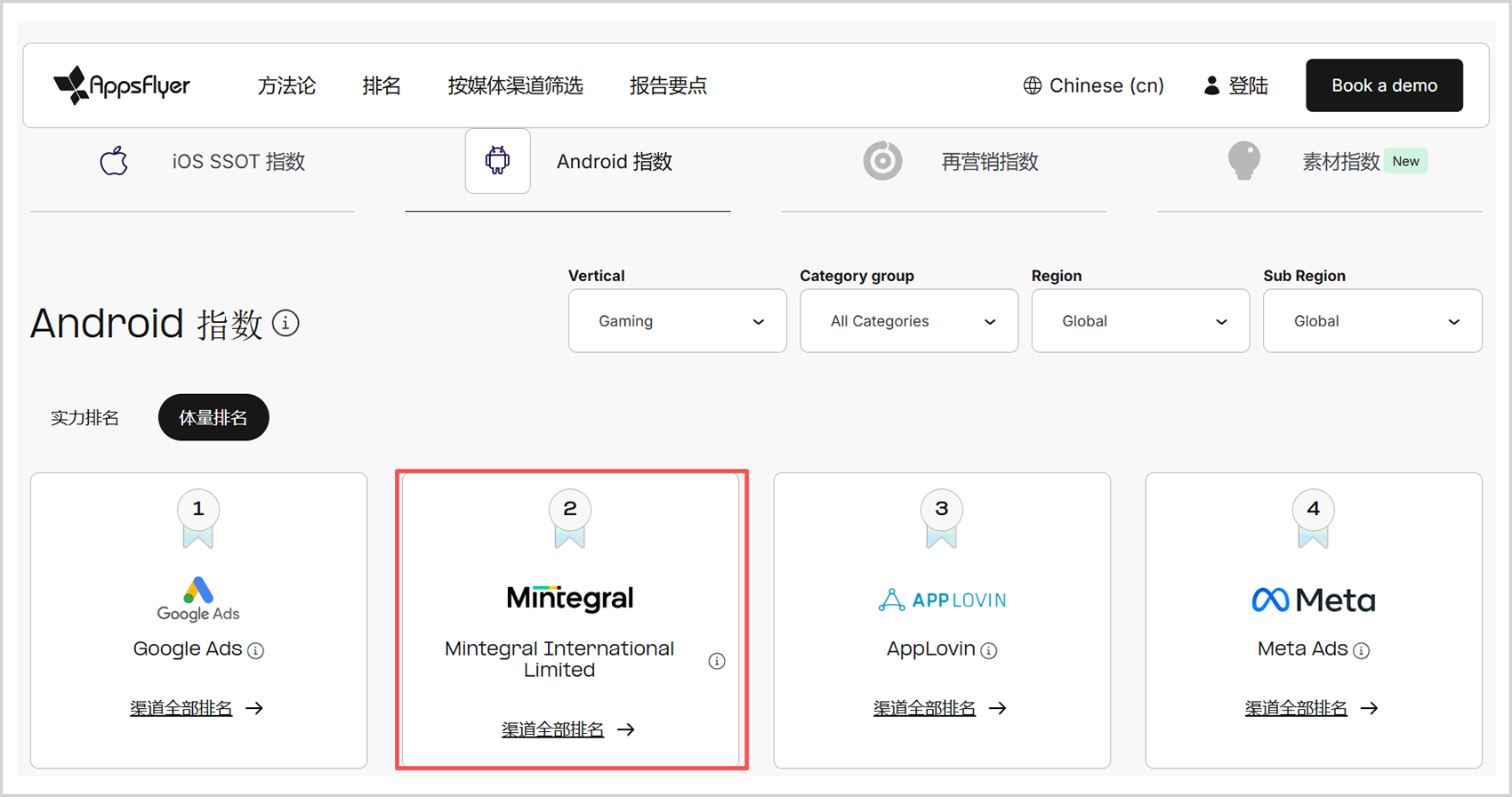 从整体来看,Mintegral在多垂类、多区域市场的排名,勾勒出其全球化、多元化的布局。