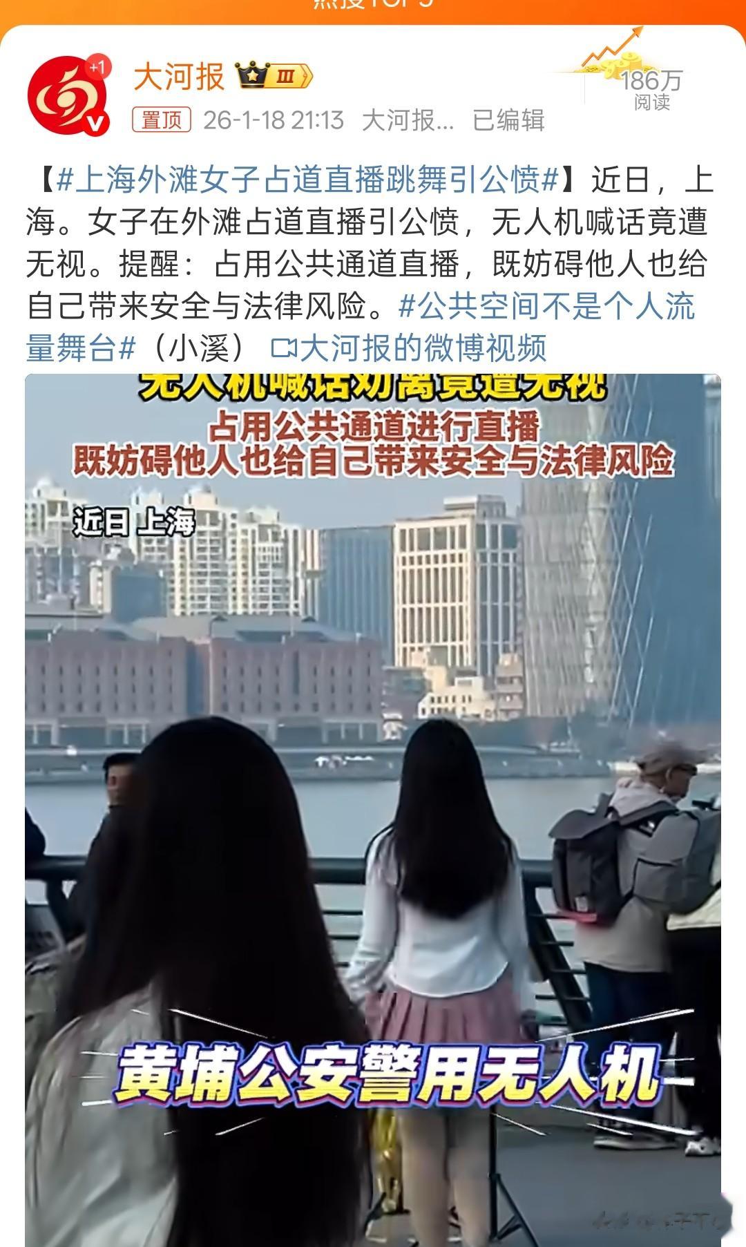 上海外滩女子占道直播跳舞且无视警用无人机喊话