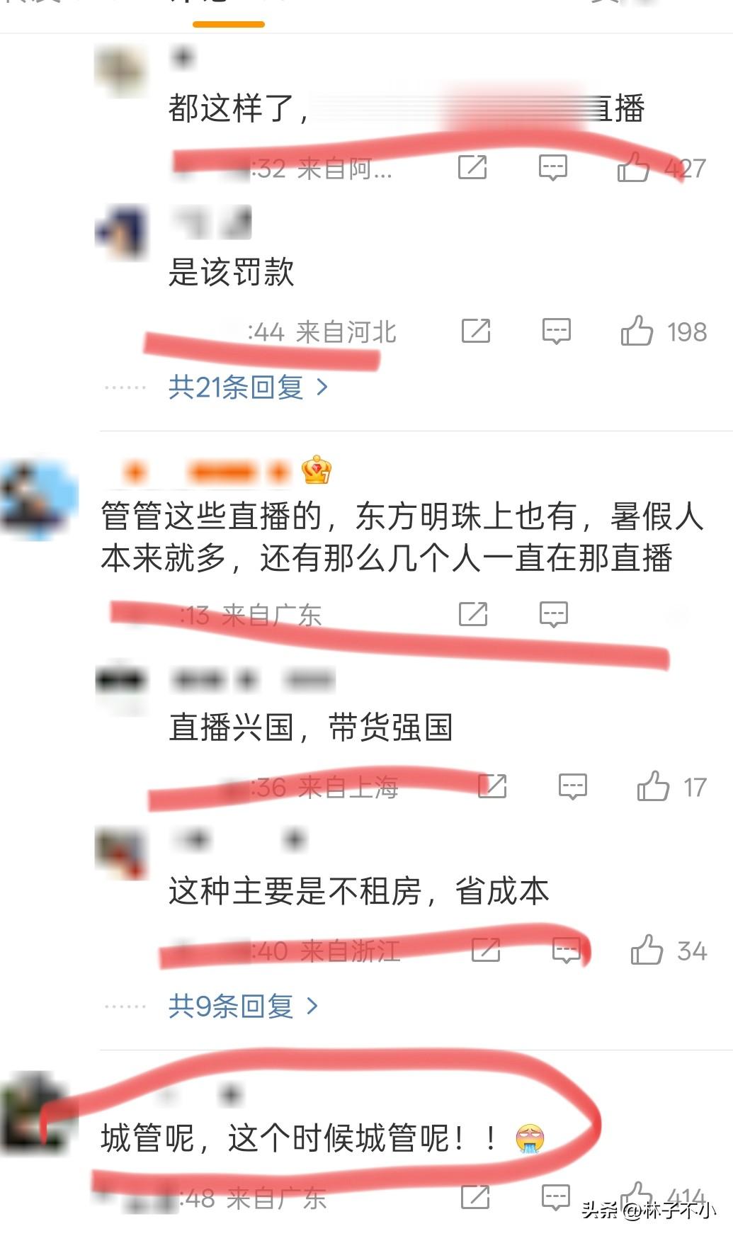 有网友说: “该管管这些直播的,东方明珠上也有,暑假人本来就多,还有那么几个人一直在那直播。”