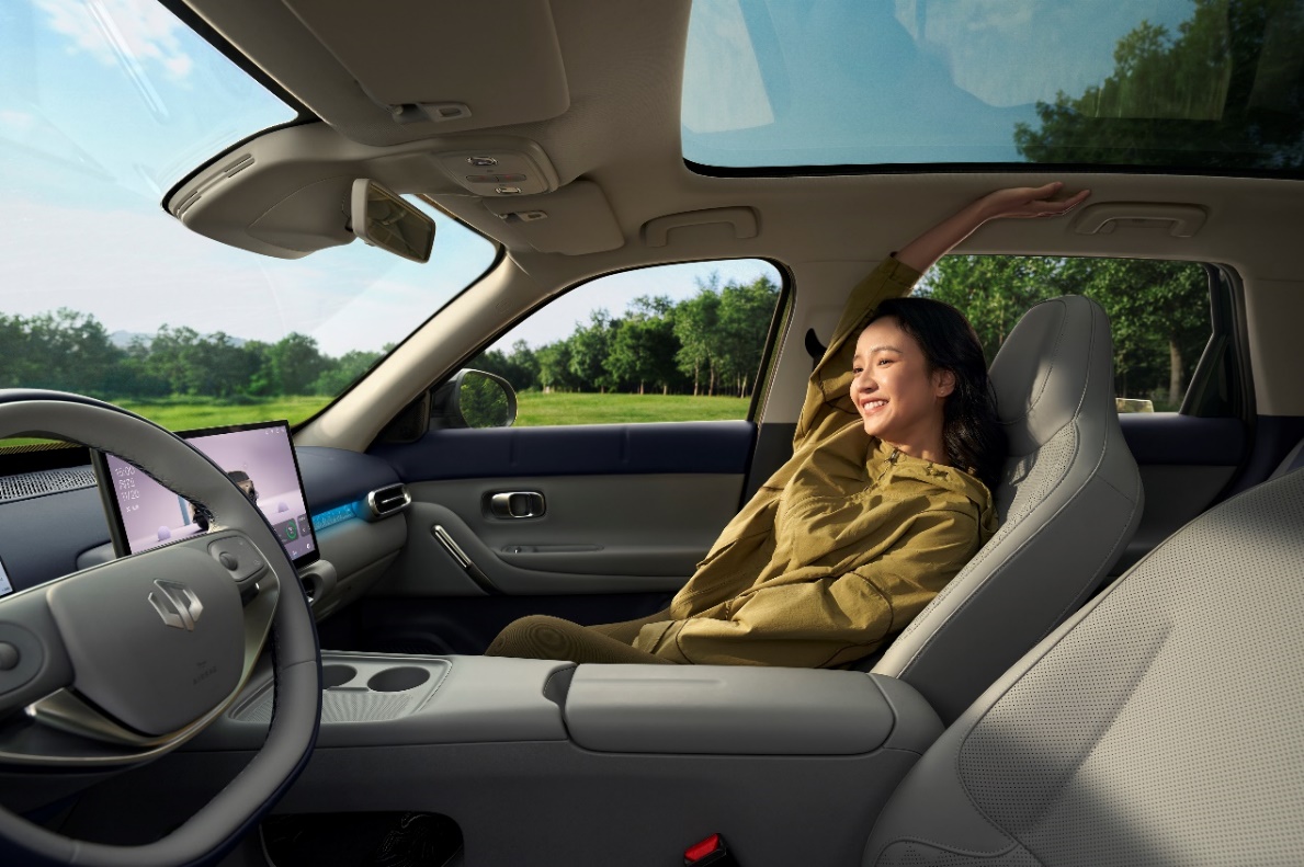 采用科技自然美学 2.0设计,4270×1810×1635mm 车身 + 2605mm 轴距,搭配 18 英寸运动轮毂与 “嘻嘻 / 哈哈” 情绪灯组,辨识度拉满。提供橡果棕、海苔绿等 6 款自然灵感车色;1.55㎡全景天幕隔绝 99.9% 紫外线,座舱软包面积 2.63㎡,座椅面料获欧盟 OEKO 母婴级最高认证,婴幼儿可直接接触;首创悬浮式 IP Bar 支持 DIY 氛围灯、香薰等附件。