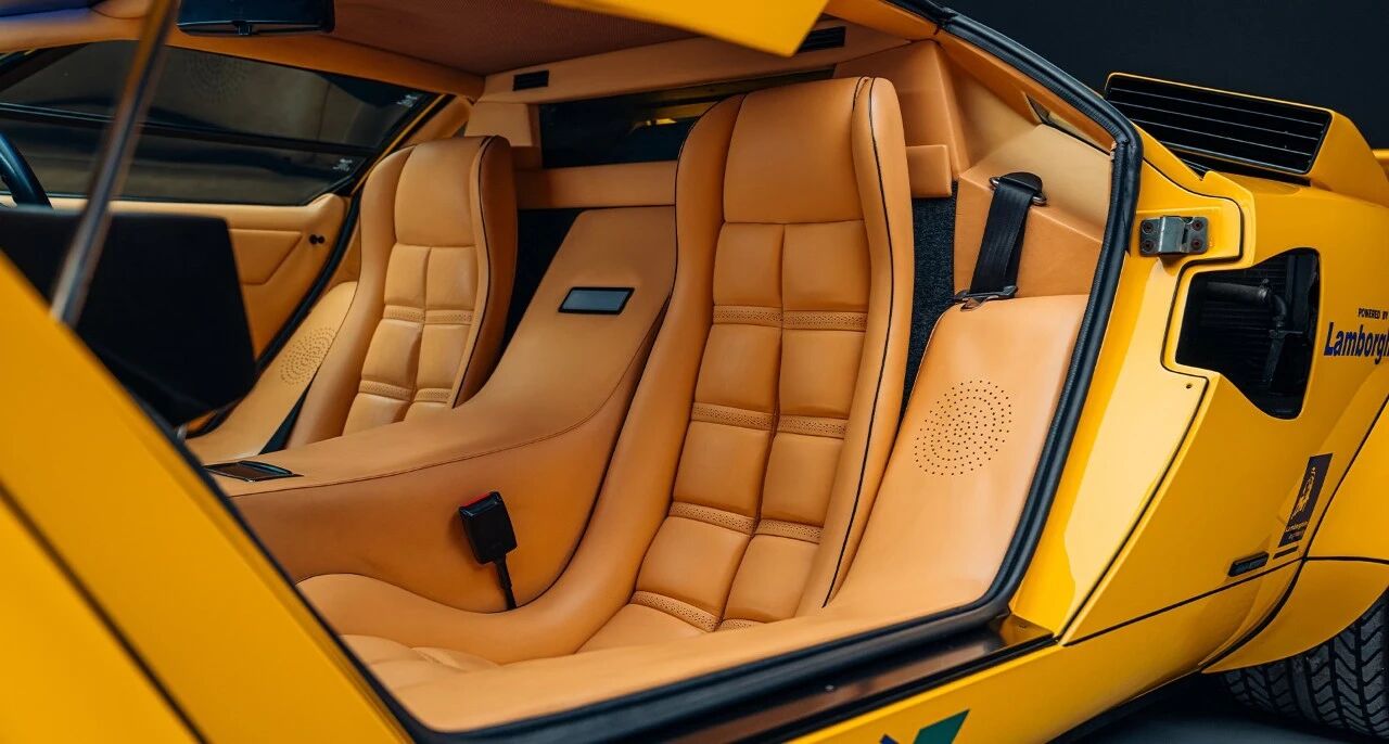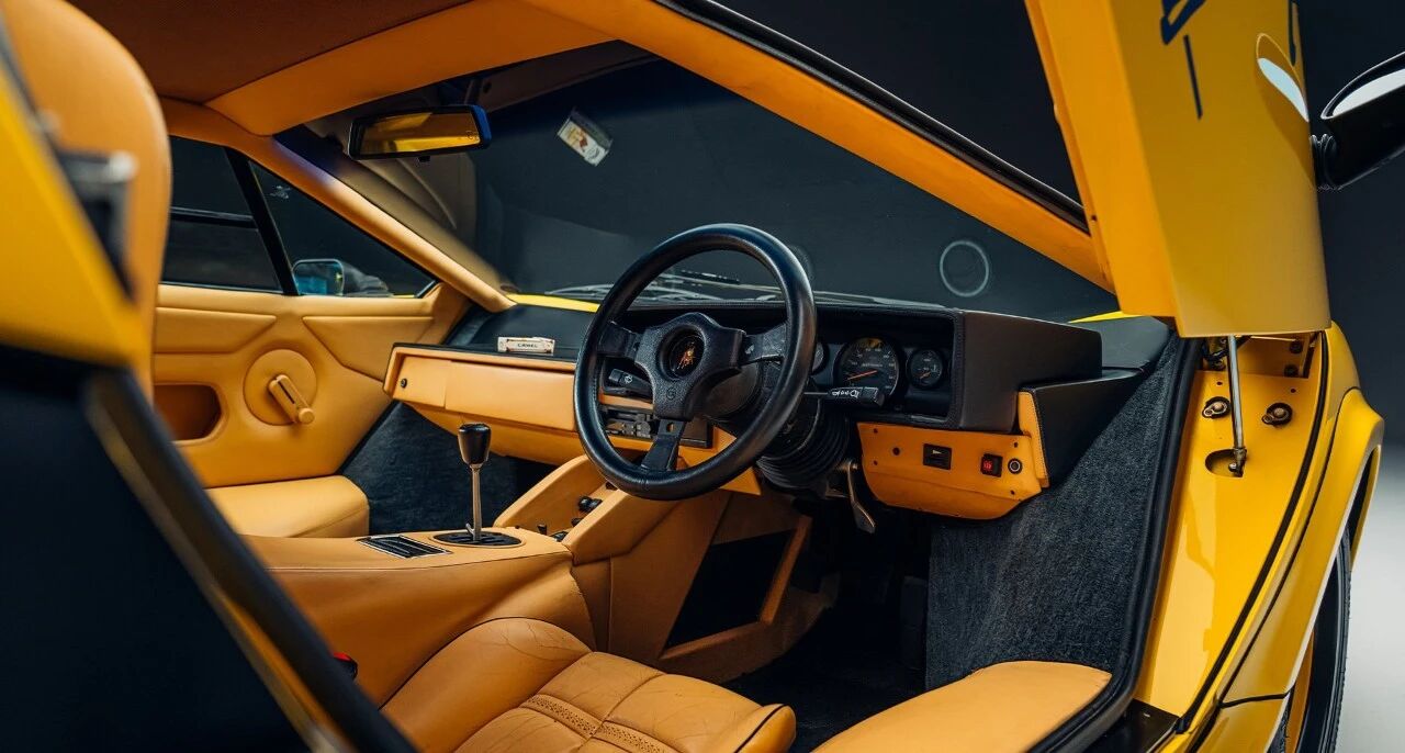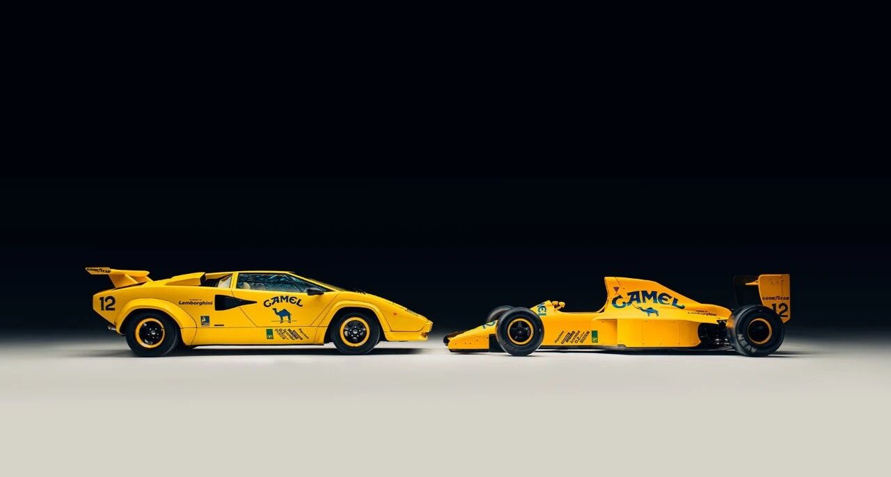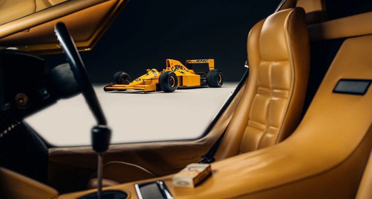 与这台F1战车相辅相成的,是1985款兰博基尼Countach 5000 QV,底盘号FLA12848,是原厂唯一一台右舵黄漆车型,车身Giallo黄与Type102的骆驼黄高度呼应,堪称天生一对。