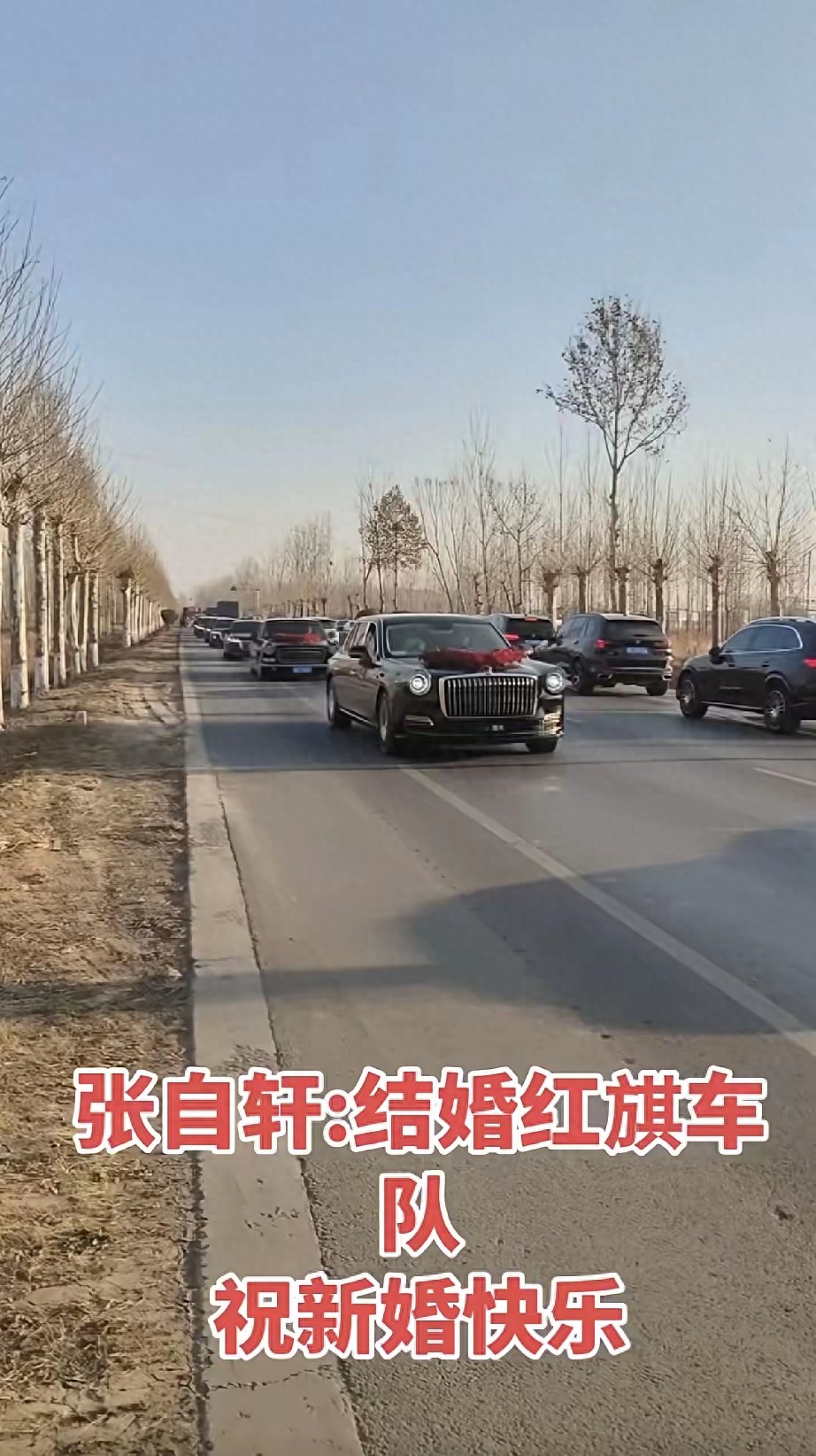 红旗H9领衔的十几辆国产轿车驶入村口,车门打开,穿着常服的张自轩把新娘从车里牵出来,周围的人群爆发出欢呼。图片来源于网络