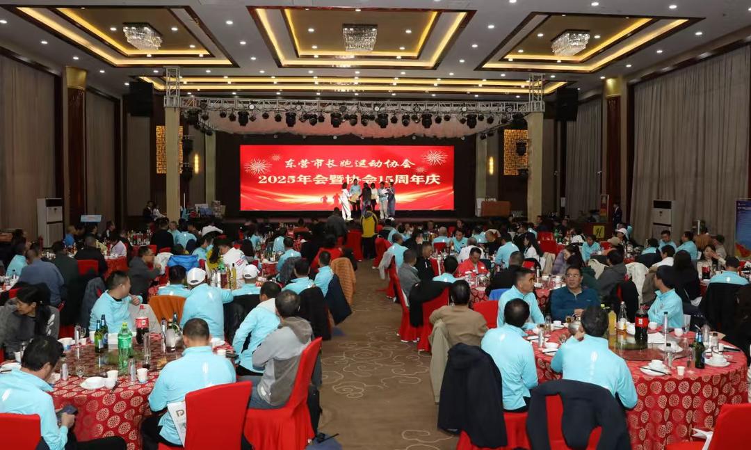 12月21日,东营市长跑运动协会2025年会暨15周年庆祝大会在东营黄河会展中心成功举办。活动以“奔跑十五载,步履不止息——致敬坚持,共赴未来”为主题,联动健心跑五周年庆祝活动,东营市各行业协会代表、基层社区负责人、战略合作伙伴、媒体及核心跑友代表200余人参与。