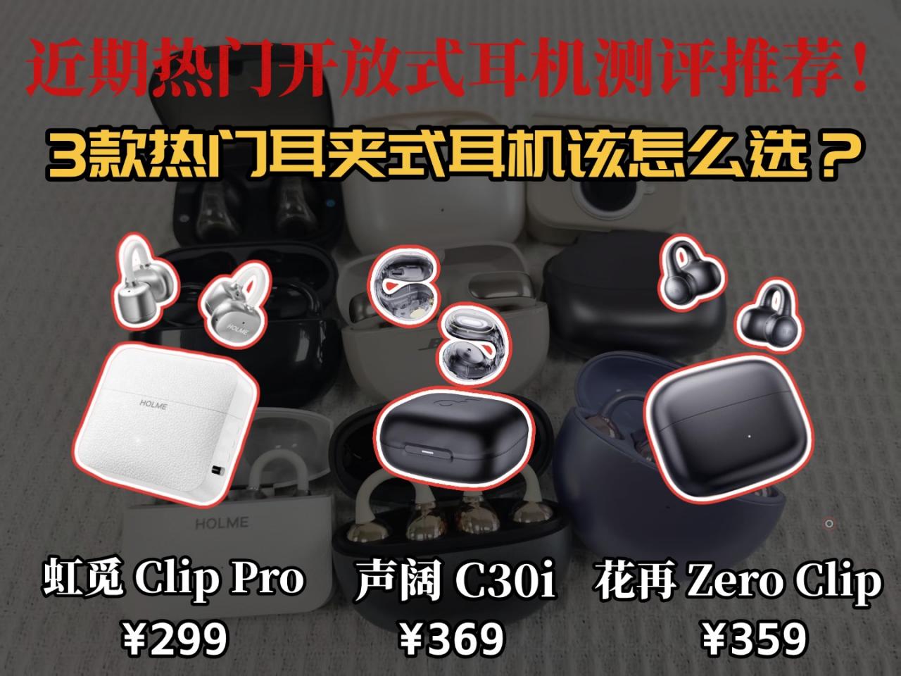 我作为一个耳机博主,测了挺久耳机了,太懂这种纠结了。特意选了三款近期超火的来实际体验,分别是 299 元的虹觅 Clip Pro、359 元的花再 Zero Clip 和 369 元的声阔 C30i。佩戴、音质、防漏音这些大家最在意的点都挨个测了,还整理了不同预算的挑选建议,想选这类耳机的可以看看,能少踩点坑少走弯路。