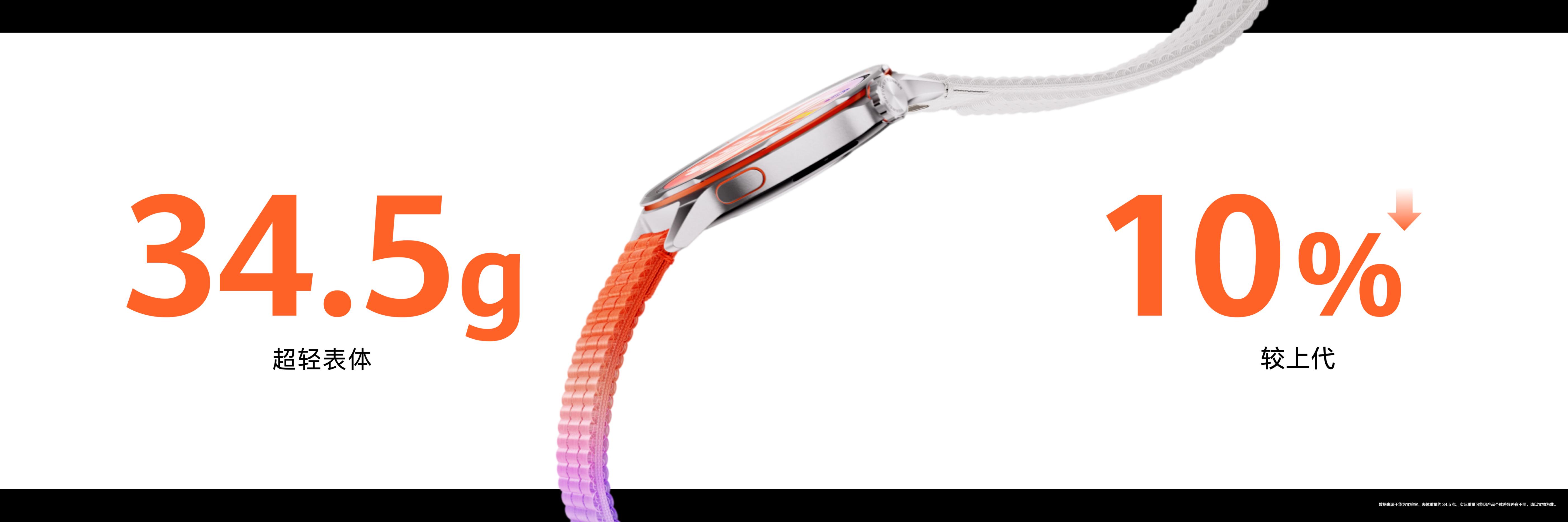 针对马拉松跑者普遍腕围较细、对装备追求贴合性与稳定性的特点。HUAWEI WATCH GT Runner 2升级表体设计,整体轮廓进一步收窄,表体采用钛合金材料打造,整机总重43.5g佩戴更轻更贴肤。