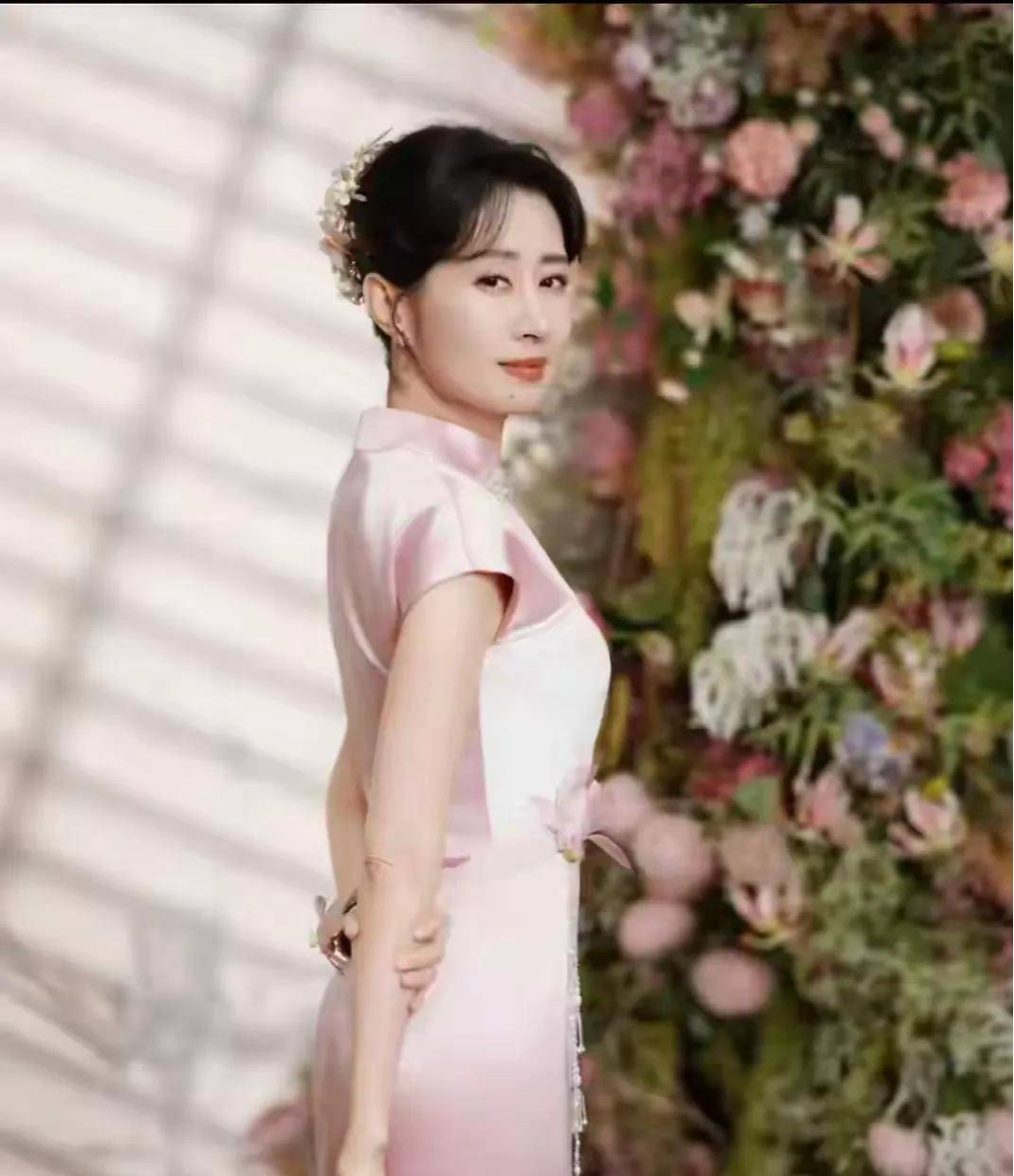 旗袍的粉色不是普通的粉,是设计师兰玉专门定染的中式面料。底布透着淡淡的珠光,在舞台灯光下泛起柔和的涟漪。衣身上绣着鲁绣玉兰花,花瓣层层叠叠,栩栩如生。最绝的是手腕上的装饰,那不是普通的首饰,而是把山东烟台的非遗绒绣和绒花叠戴在一起。绒绣的细腻质感,绒花的立体造型,和旗袍上的玉兰花遥相呼应。刘敏涛后来在采访里说,这是她对家乡的温柔致敬。