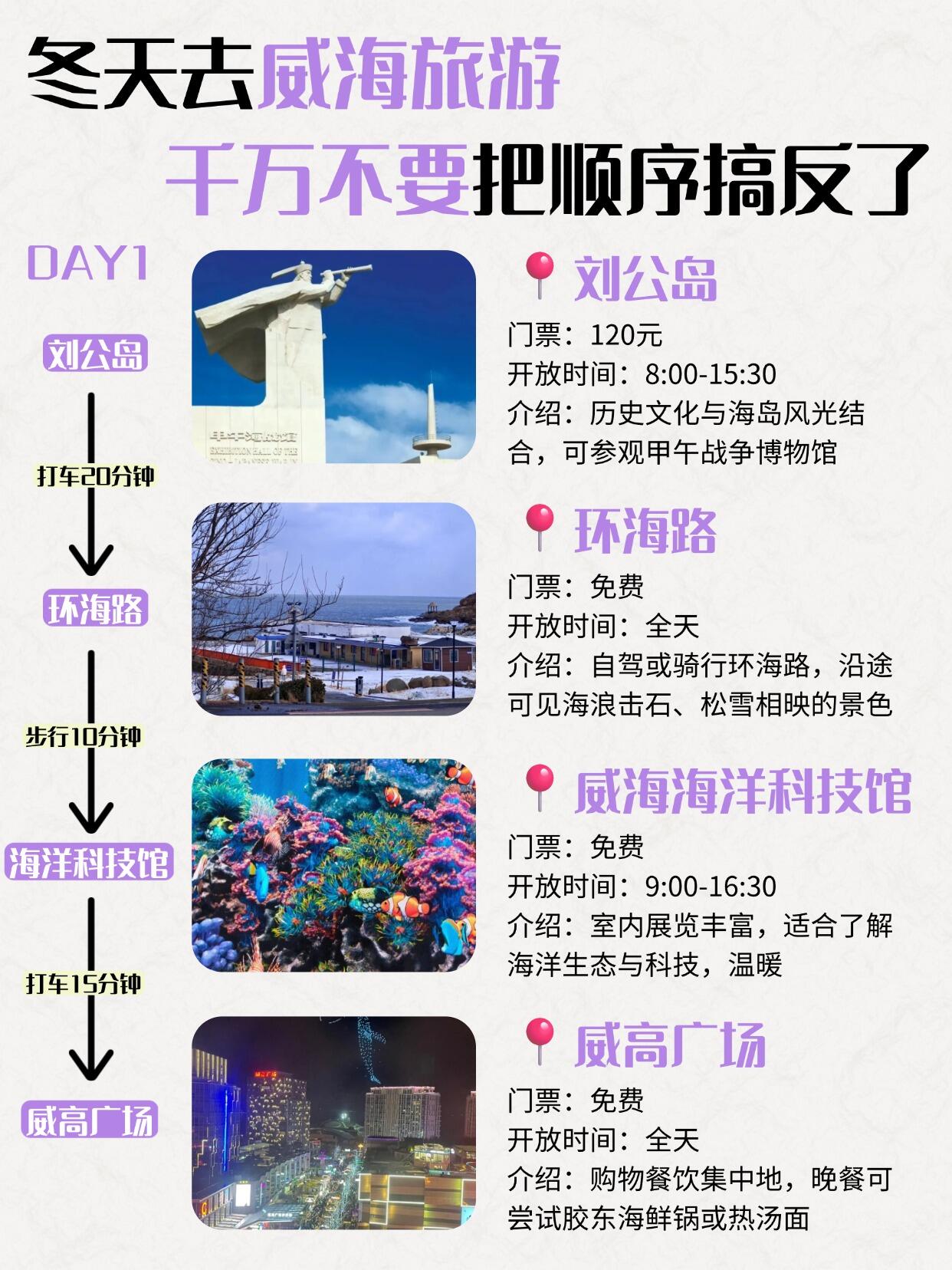 📍第一天:刘公岛 → 环海路 → 威海海洋科技馆 → 威高广场