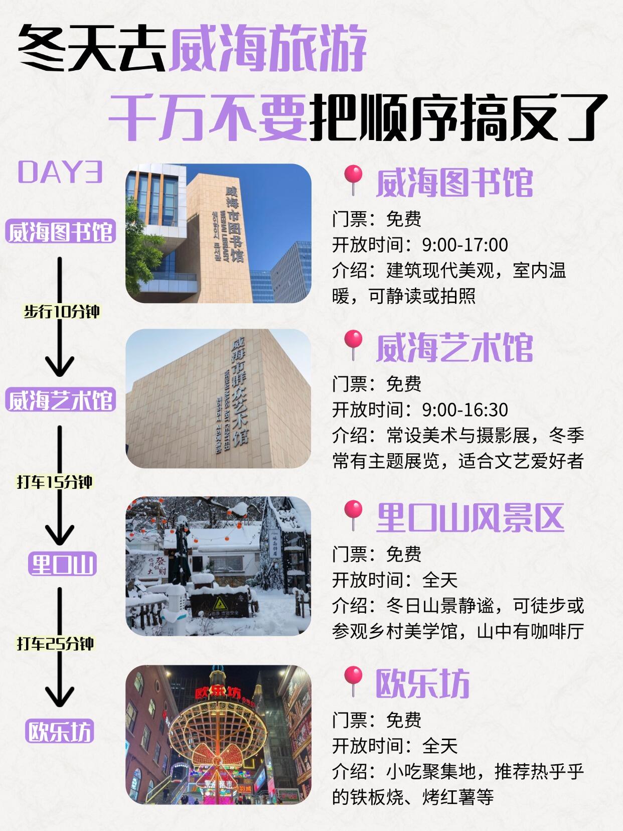 📍第三天:为好图书馆 → 威海艺术馆 → 里口山风景区 → 殴乐坊