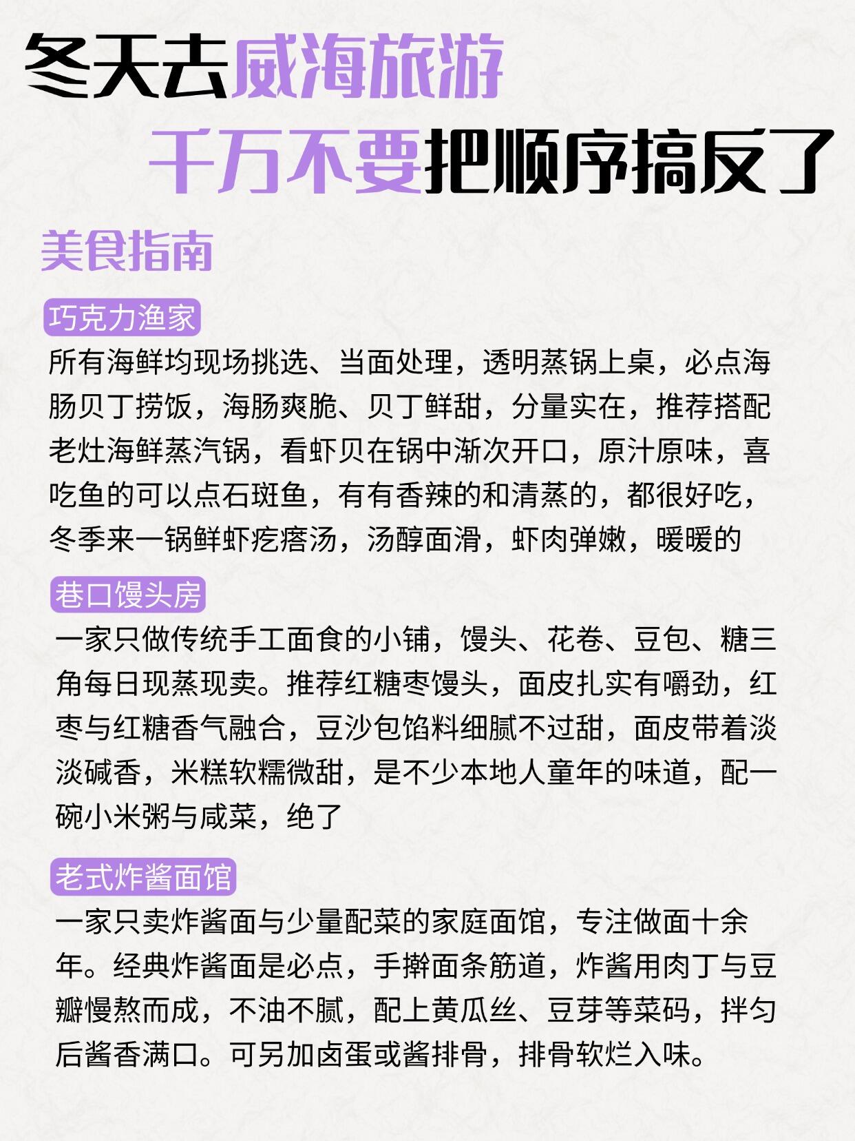威海3天两夜游玩路线