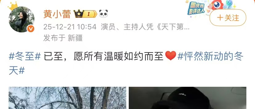 黄小蕾冬至跑到了新疆伊犁,她则希望所有的温暖都能如约而至。还不忘发出几张美照,伊犁的雪景看了就想去。