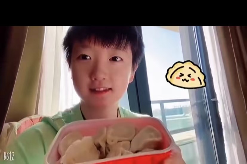 孙颖莎的饺子盒还是粉红色的,后面的座椅靠垫也是粉红色。她拿着饺子跟大家分享,窗外阳光明媚,如同她的心情一样,看了的人都同样觉得快乐!
