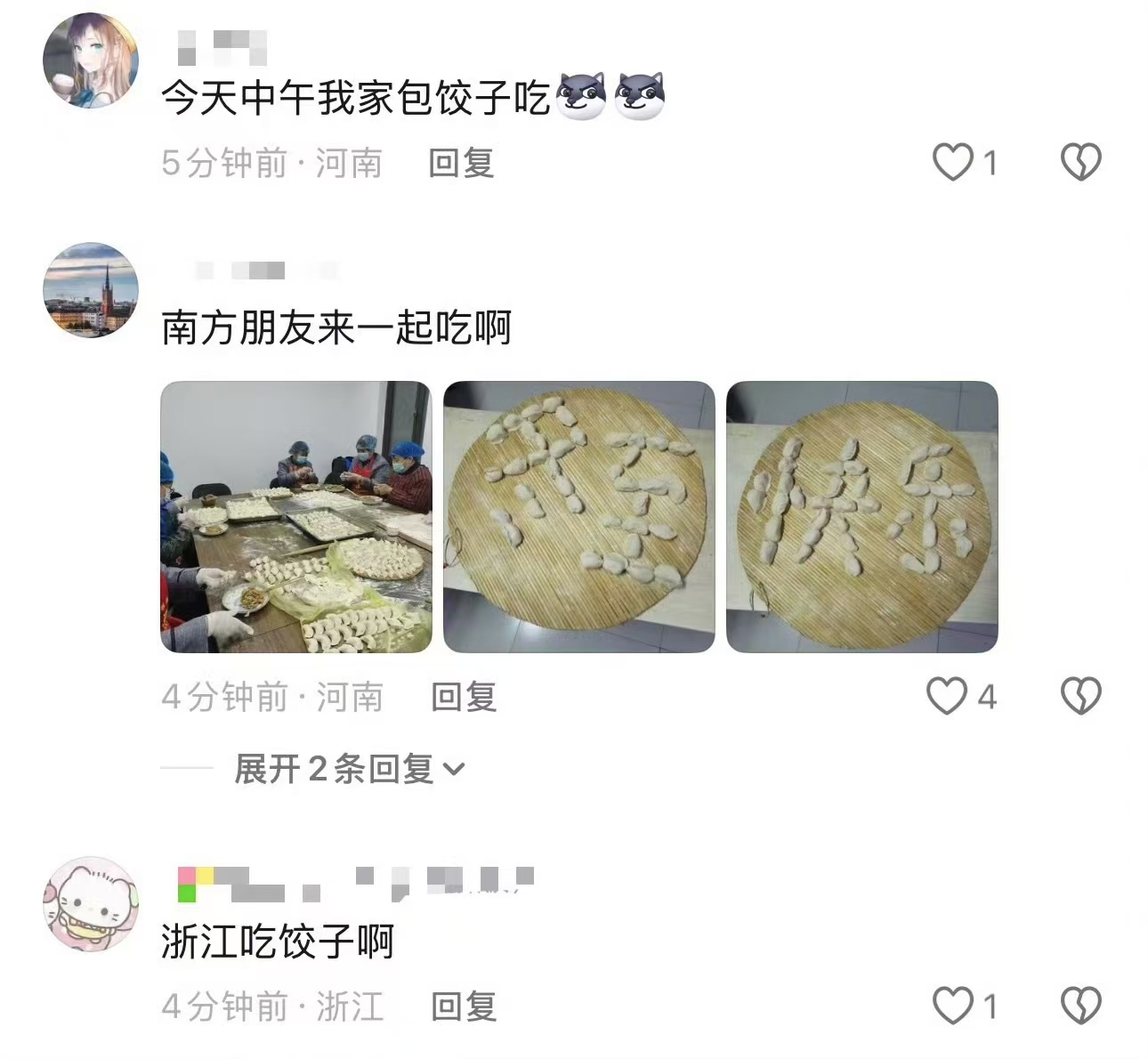 冬至很多岗位的人都要上班,不少公司和社区都在组织活动送温暖。大家都在包饺子,吃了饺子就平平安安。在此祝大家冬至快乐,所愿所得。