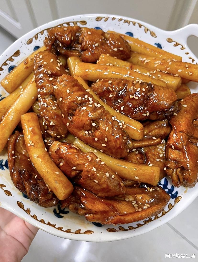 而年糕的加入,则要归功于千禧年初在伦敦留学的一位姑娘。春节那天,她独自在异国他乡,抱着1磅鸡翅、半价年糕和2升可乐,在10平米的合租厨房里鼓捣出了这道“甜辣糯弹”的菜。当酱汁在锅里“咕嘟咕嘟”冒泡时,整个走廊的英国室友全被香到敲门“蹭饭”。从此,这道菜就成了海外学子群里的“想家急救包”。